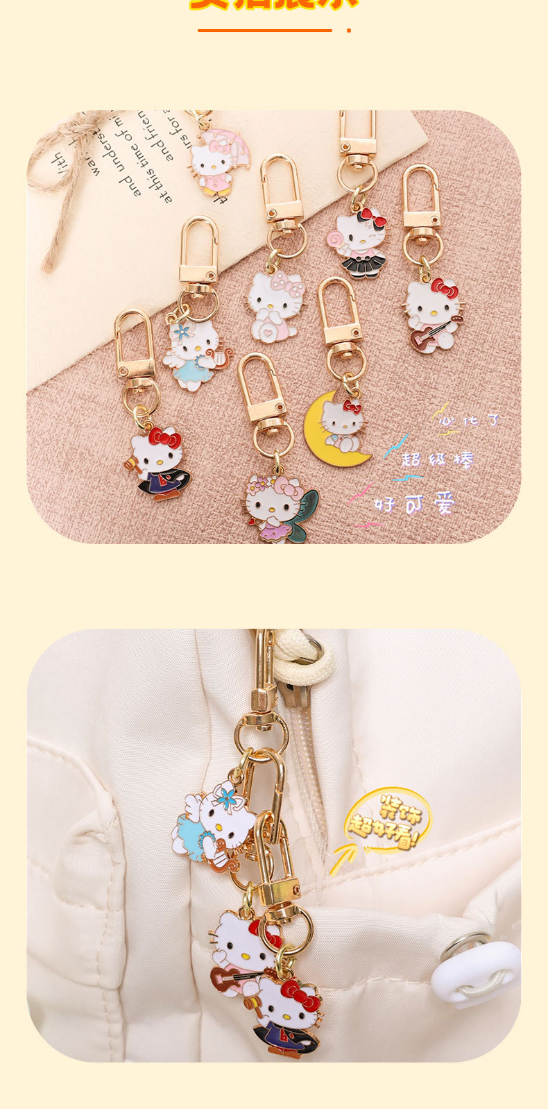 Mặt dây chuyền nhỏ móc chìa khóa dễ phối đa năng đơn giản xu hướng thời trang cá tính Mèo hoạt hình ngọt ngào và ngọt ngào