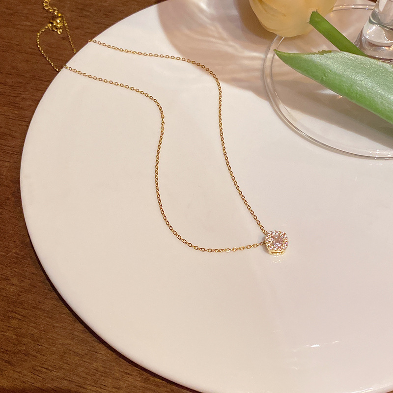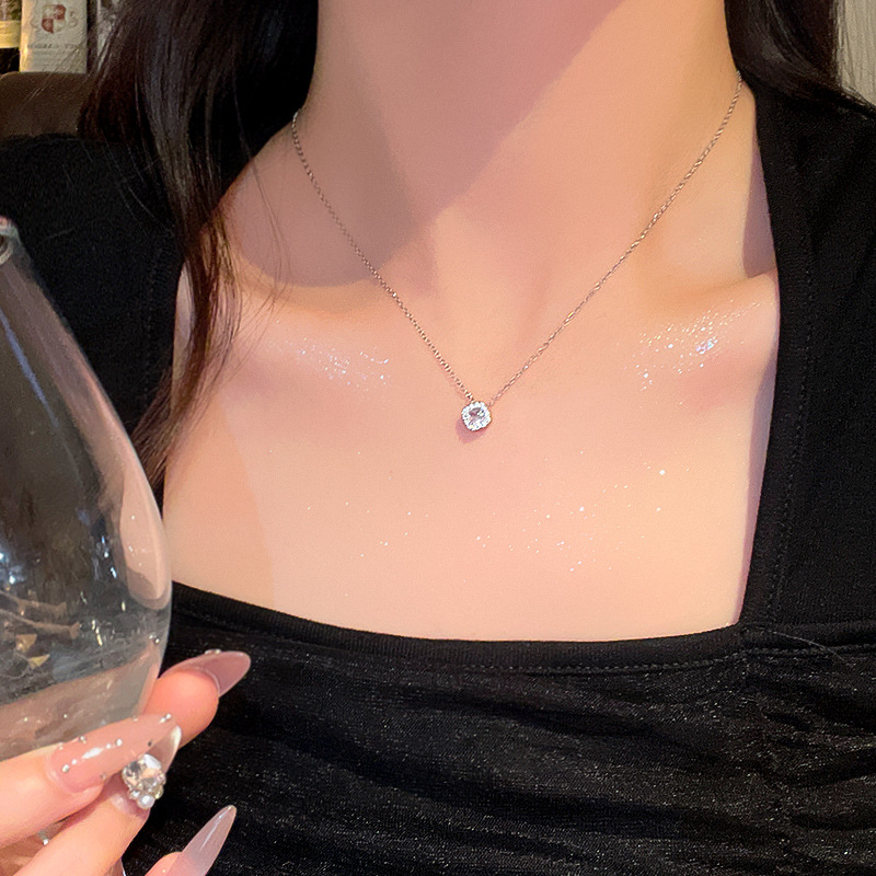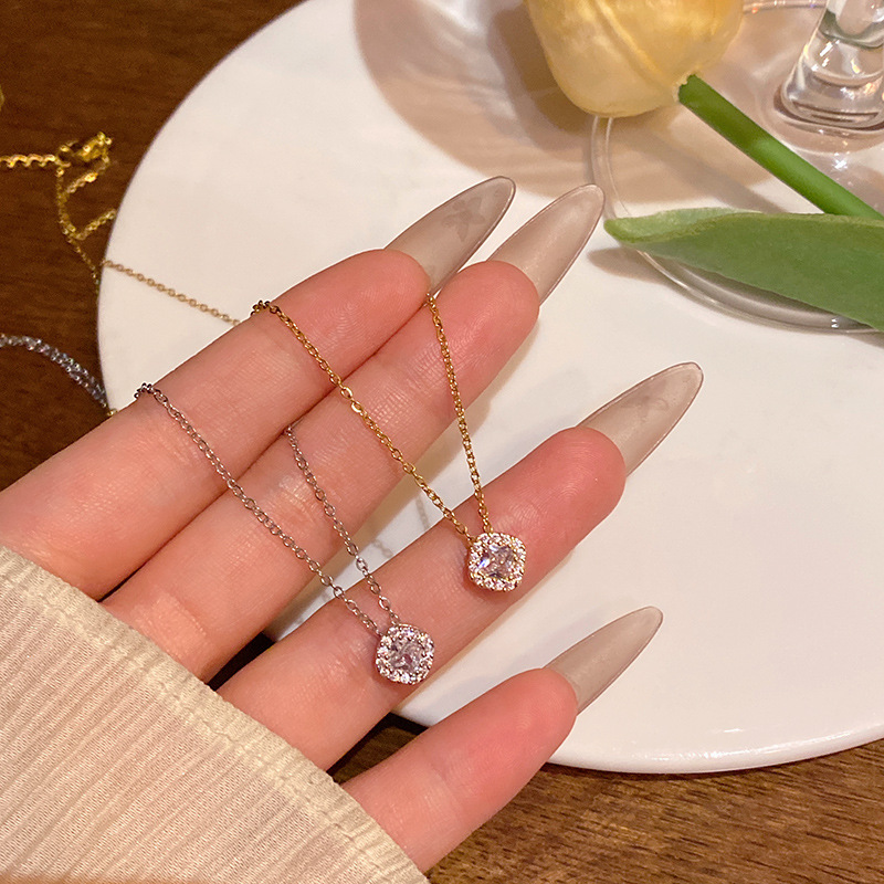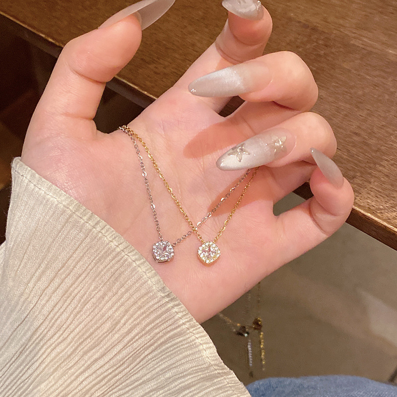 Mặt Dây chuyền Zircon nhấp nháy nhỏ sang trọng nhẹ Vòng cổ thép titan đường vuông khí chất thời trang cao cấp cảm giác vuông Zirconium Vòng cổ