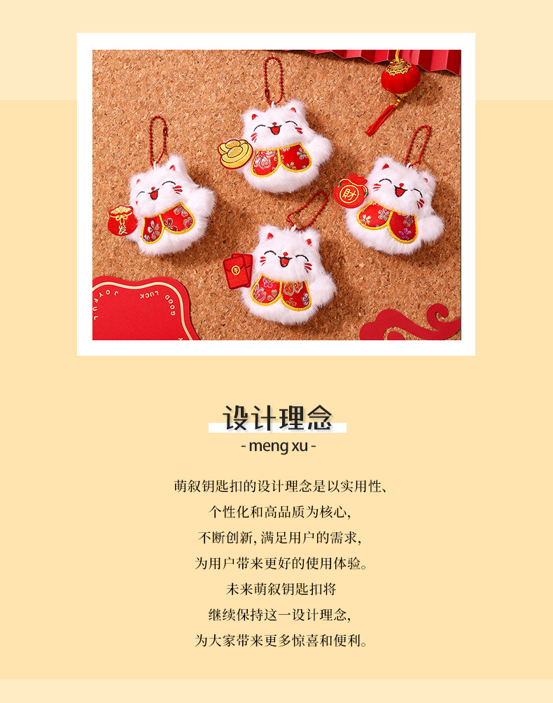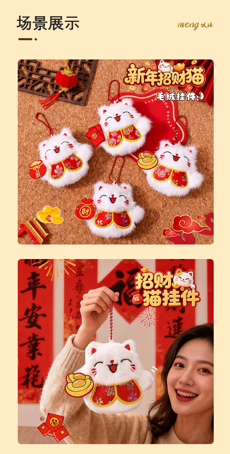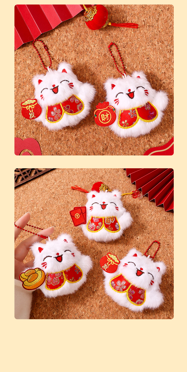 Mengxu năm mới Mèo May Mắn Móc khóa sang trọng mặt dây chuyền nhỏ túi xe hơi Mặt dây chuyền trang sức quà tặng năm mới bán buôn