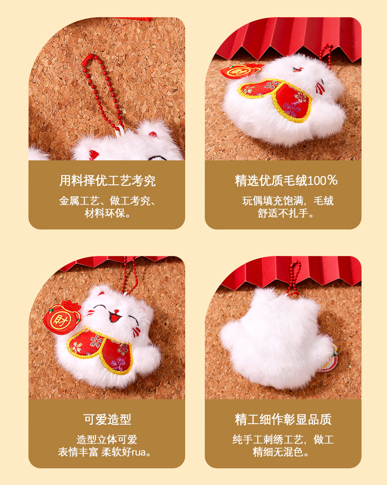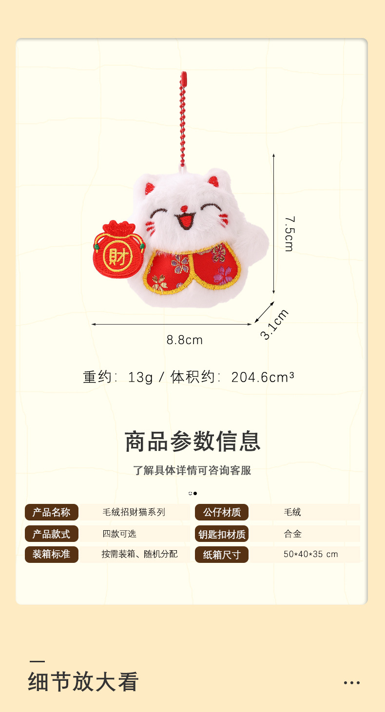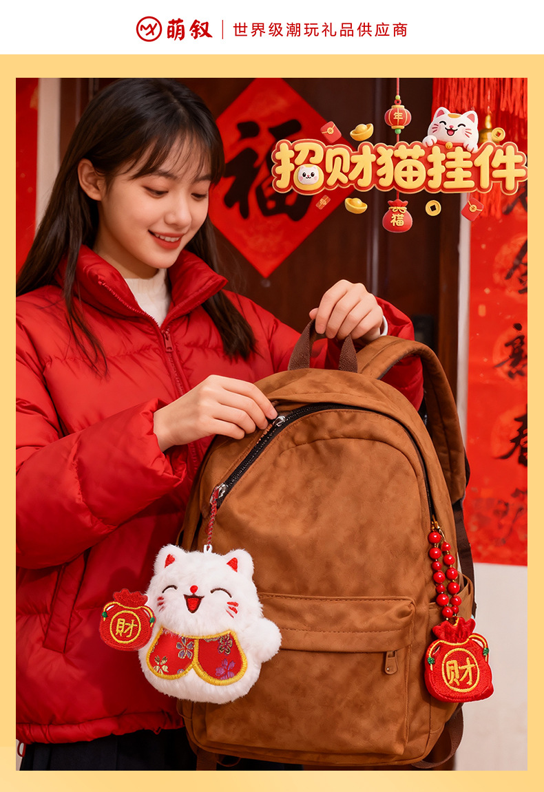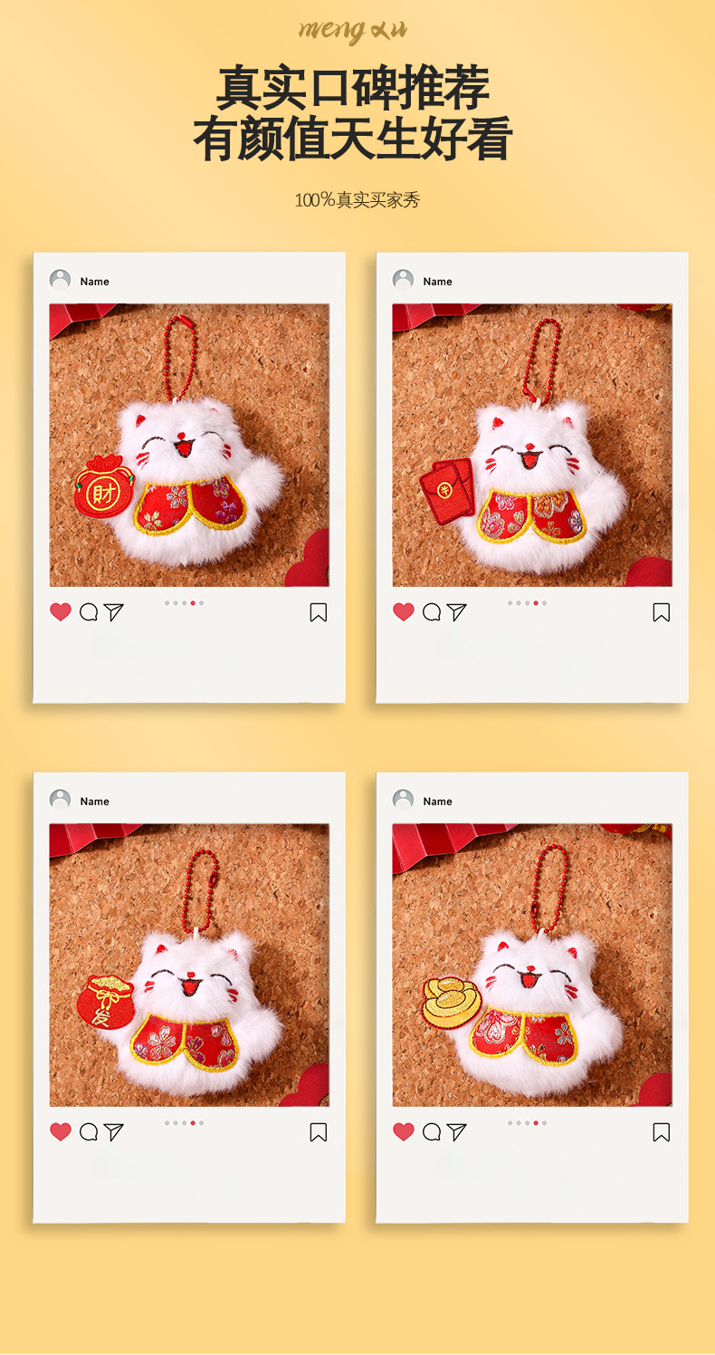 Mengxu năm mới Mèo May Mắn Móc khóa sang trọng mặt dây chuyền nhỏ túi xe hơi Mặt dây chuyền trang sức quà tặng năm mới bán buôn