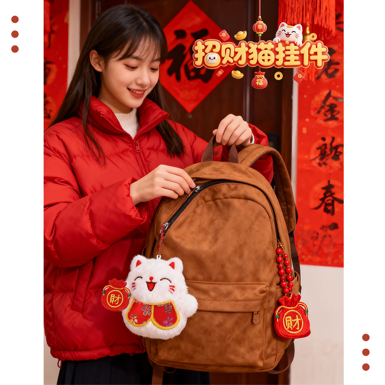 Mengxu năm mới Mèo May Mắn Móc khóa sang trọng mặt dây chuyền nhỏ túi xe hơi Mặt dây chuyền trang sức quà tặng năm mới bán buôn
