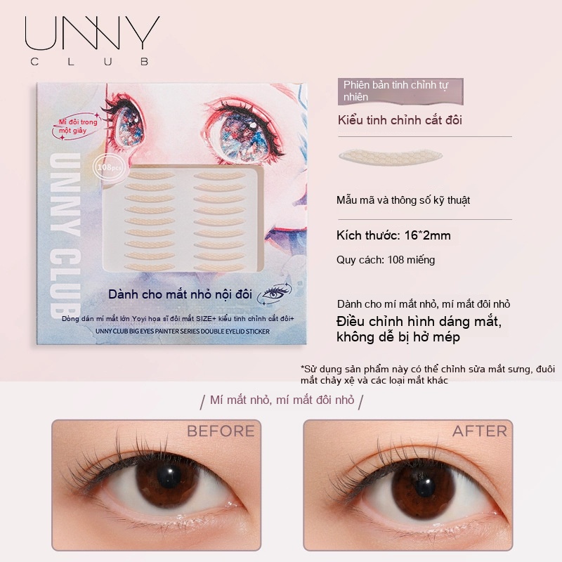 Miếng dán kích mí unny Youyi cho nữ mắt sưng tự nhiên sợi lưới sợi đơn mang theo màu da màu vô hình cho sinh viên đại học