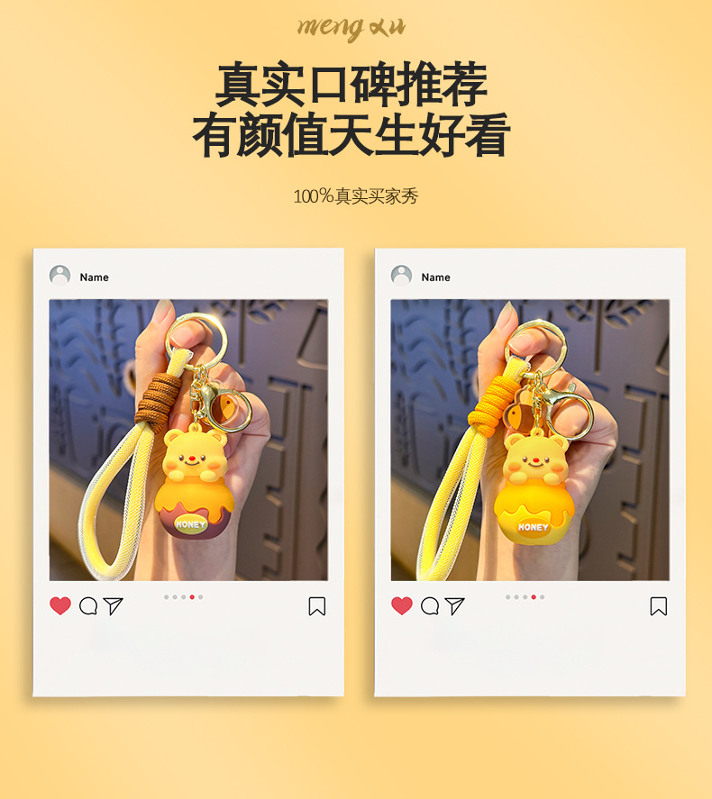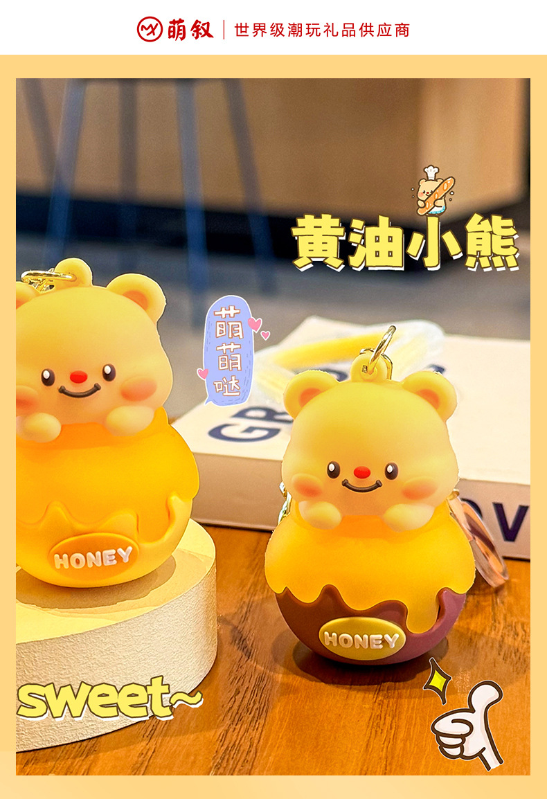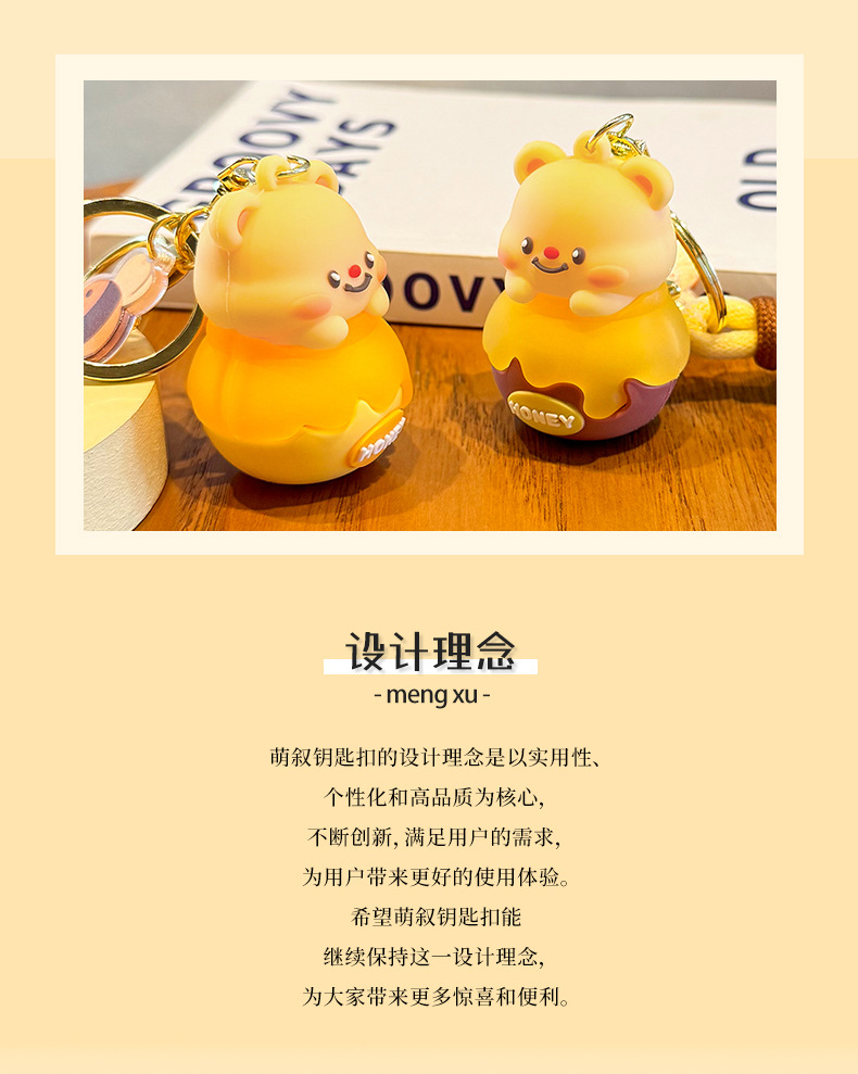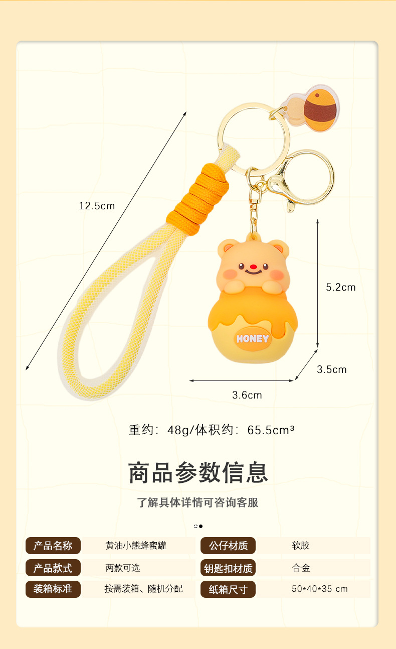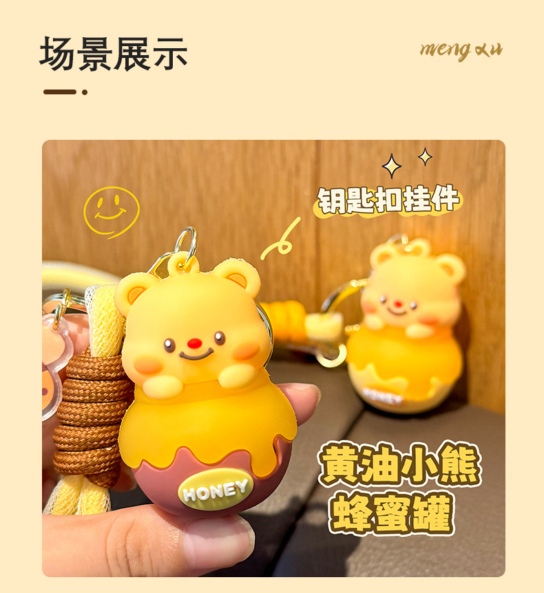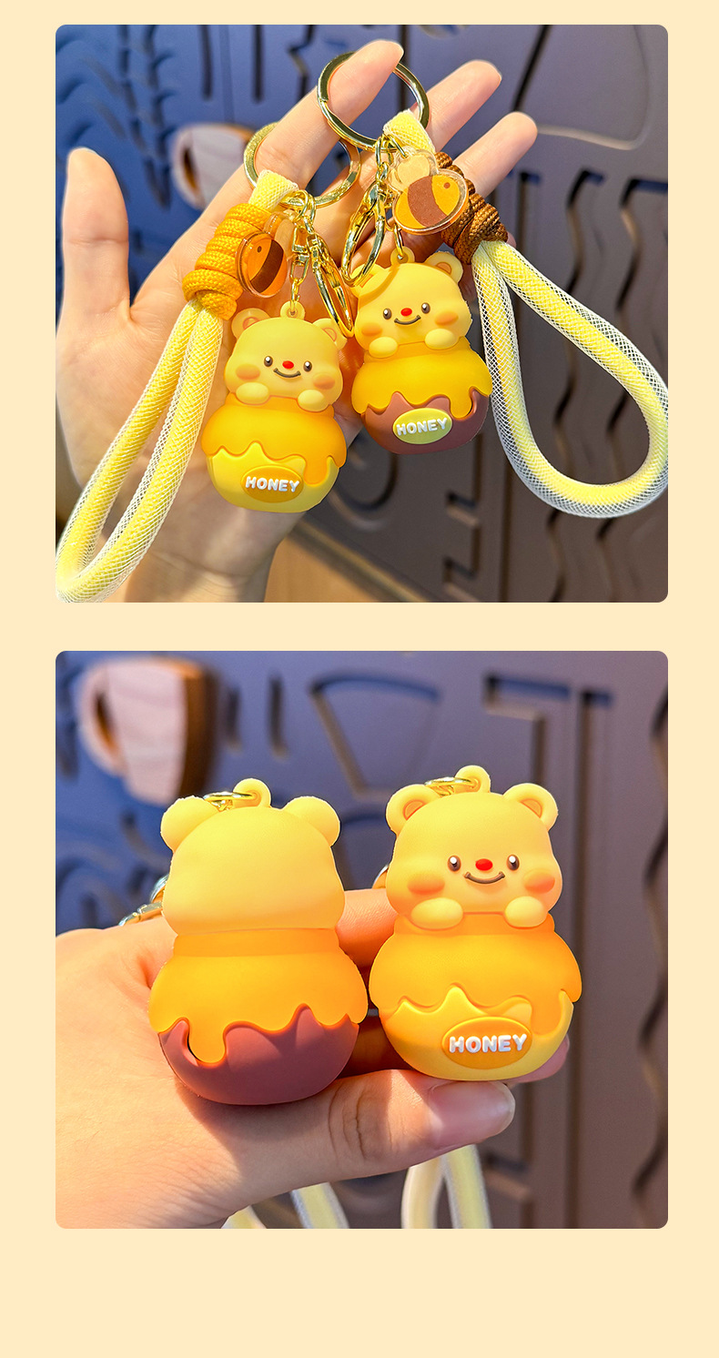 Móc chìa khóa bơ lọ Ong dễ thương, móc chìa khóa xe hơi búp bê ba chiều hoạt hình Nữ, Mặt Dây chuyền cặp sách học sinh học đường