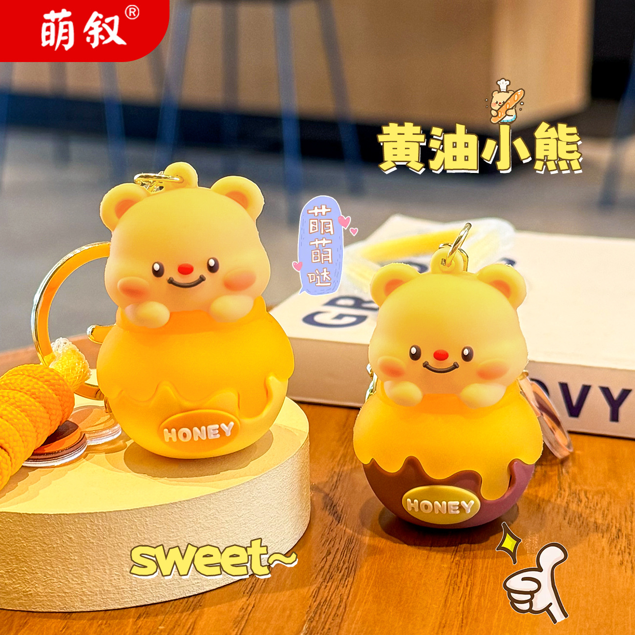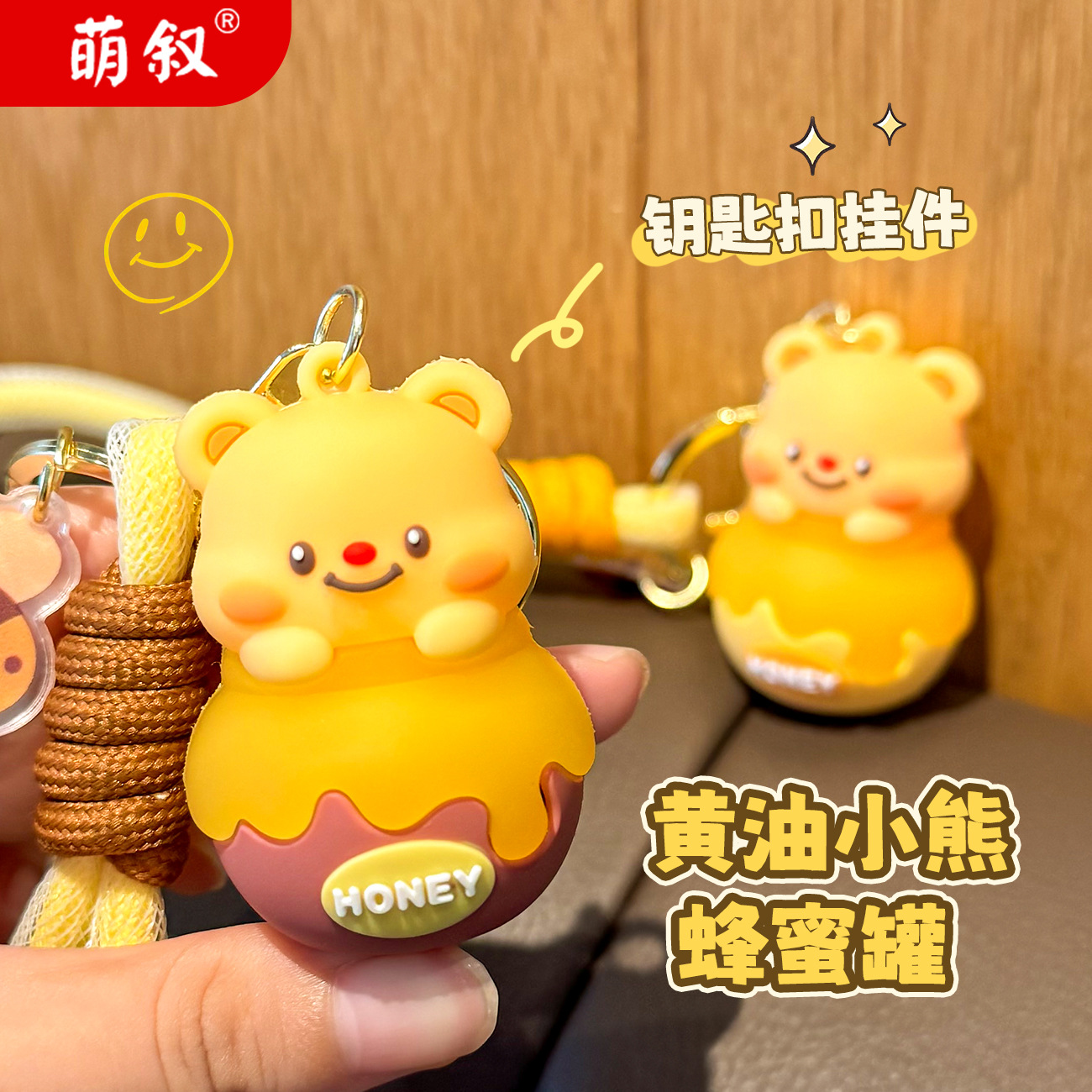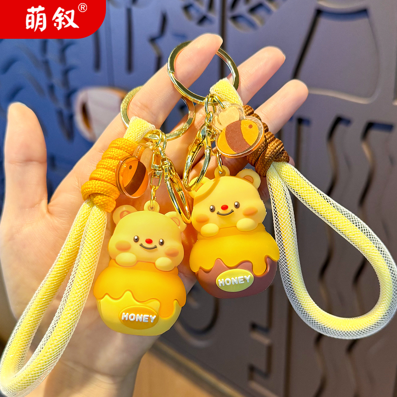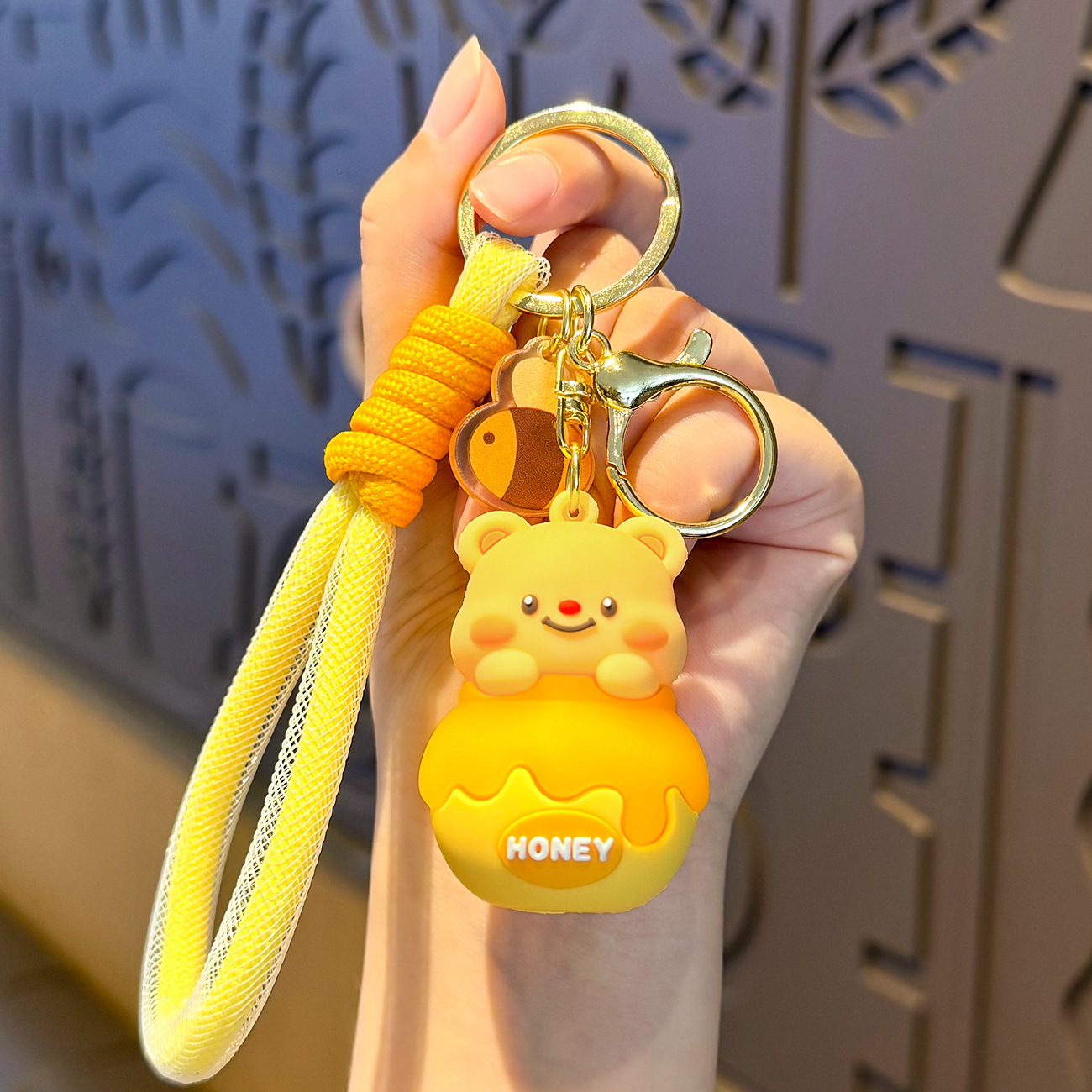 Móc chìa khóa bơ lọ Ong dễ thương, móc chìa khóa xe hơi búp bê ba chiều hoạt hình Nữ, Mặt Dây chuyền cặp sách học sinh học đường