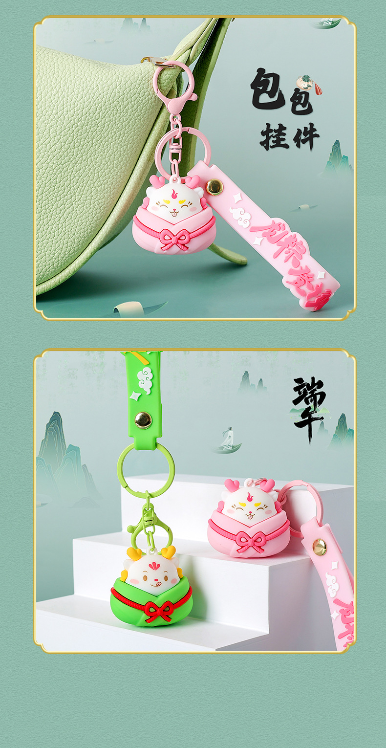 Móc khóa bánh bao gạo cao nguyên bản Lễ hội thuyền rồng Zongzi phim hoạt hình dễ thương kỳ thi tuyển sinh Đại Học Mặt Dây Chuyền Cặp học sinh trung học Quà tặng tốt nghiệp