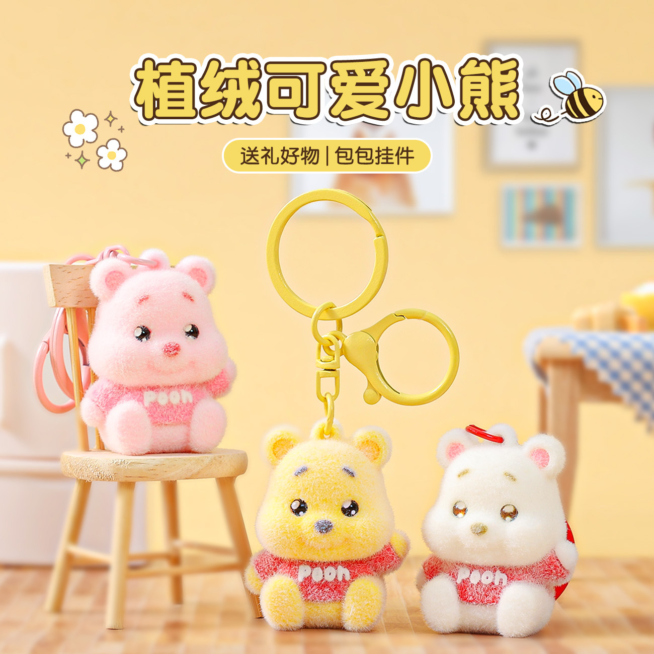 Móc khóa gấu sáng tạo mặt dây chuyền nhỏ hợp thời trang chơi pvc Búp bê túi Mặt dây chuyền móc chìa khóa xe hơi bán buôn quà tặng nhỏ