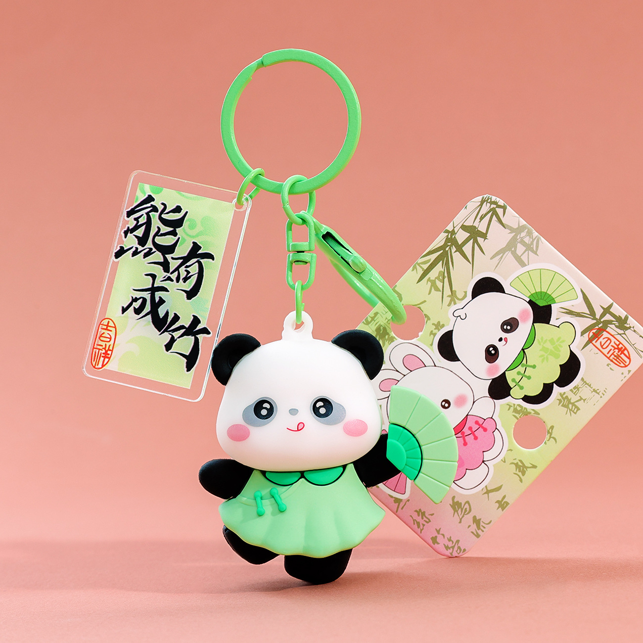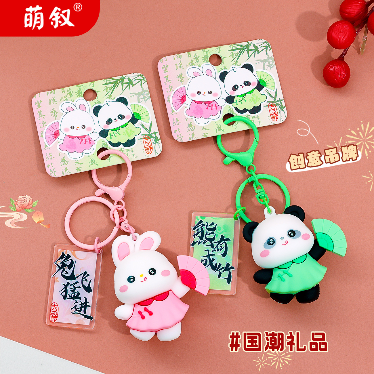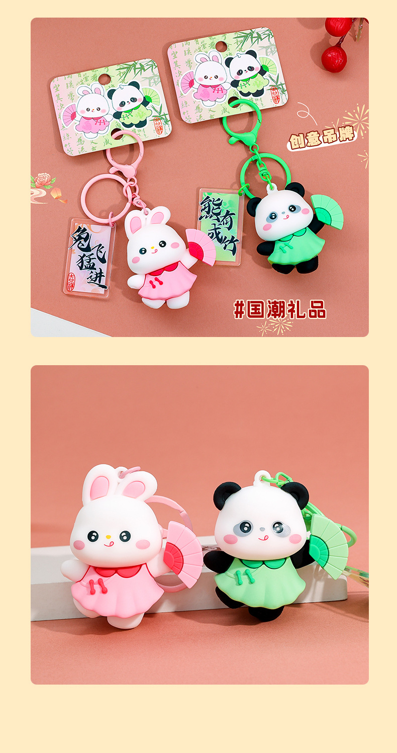 Móc khóa gấu trúc kiểu Trung Quốc mới mới dễ thương Búp bê gấu trúc nhỏ cặp đôi túi sách trang trí mặt dây chuyền quà tặng sáng tạo