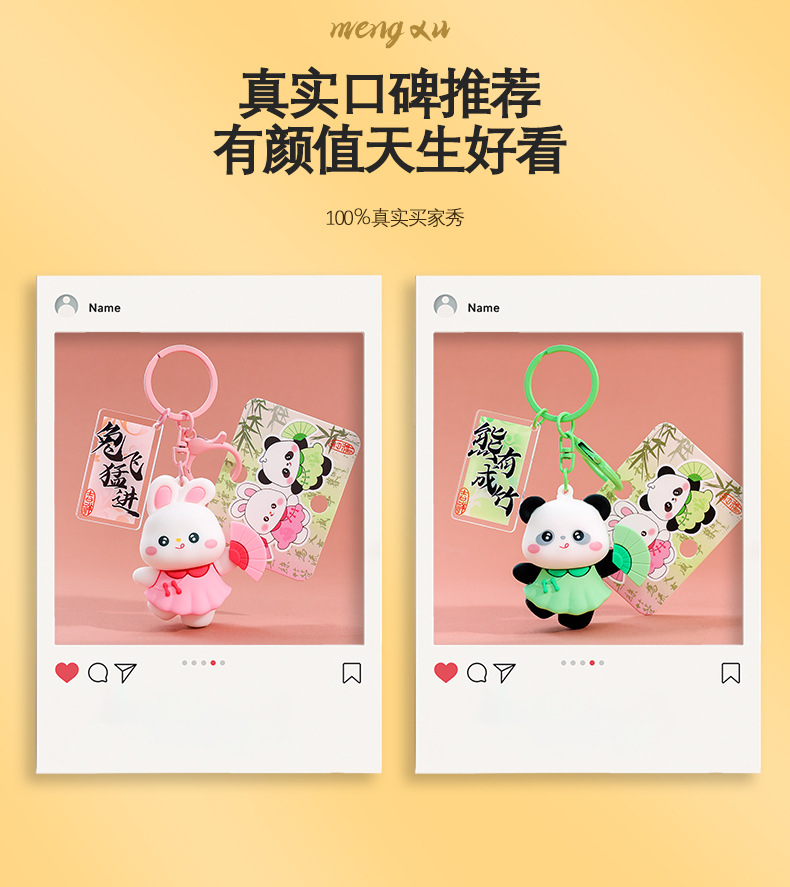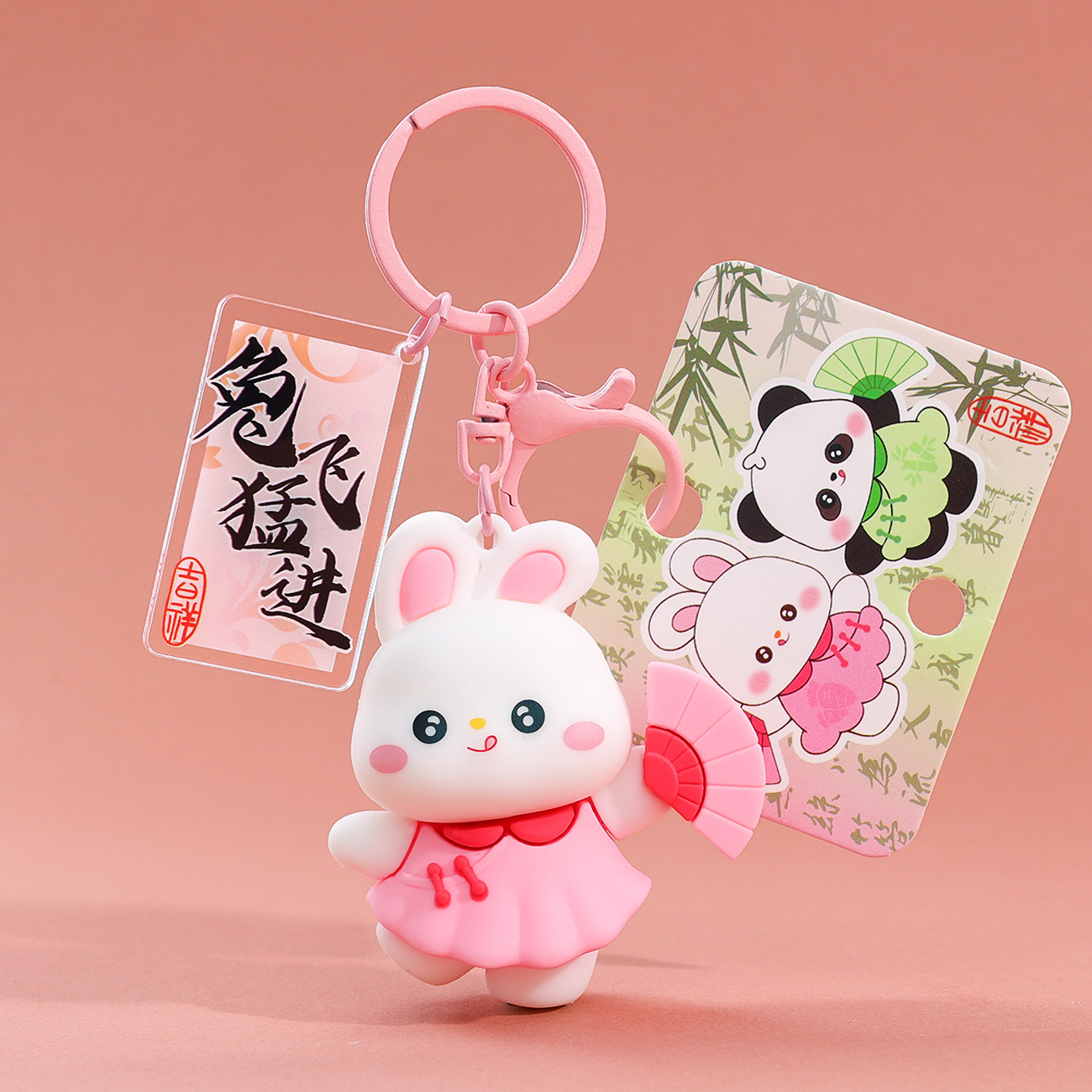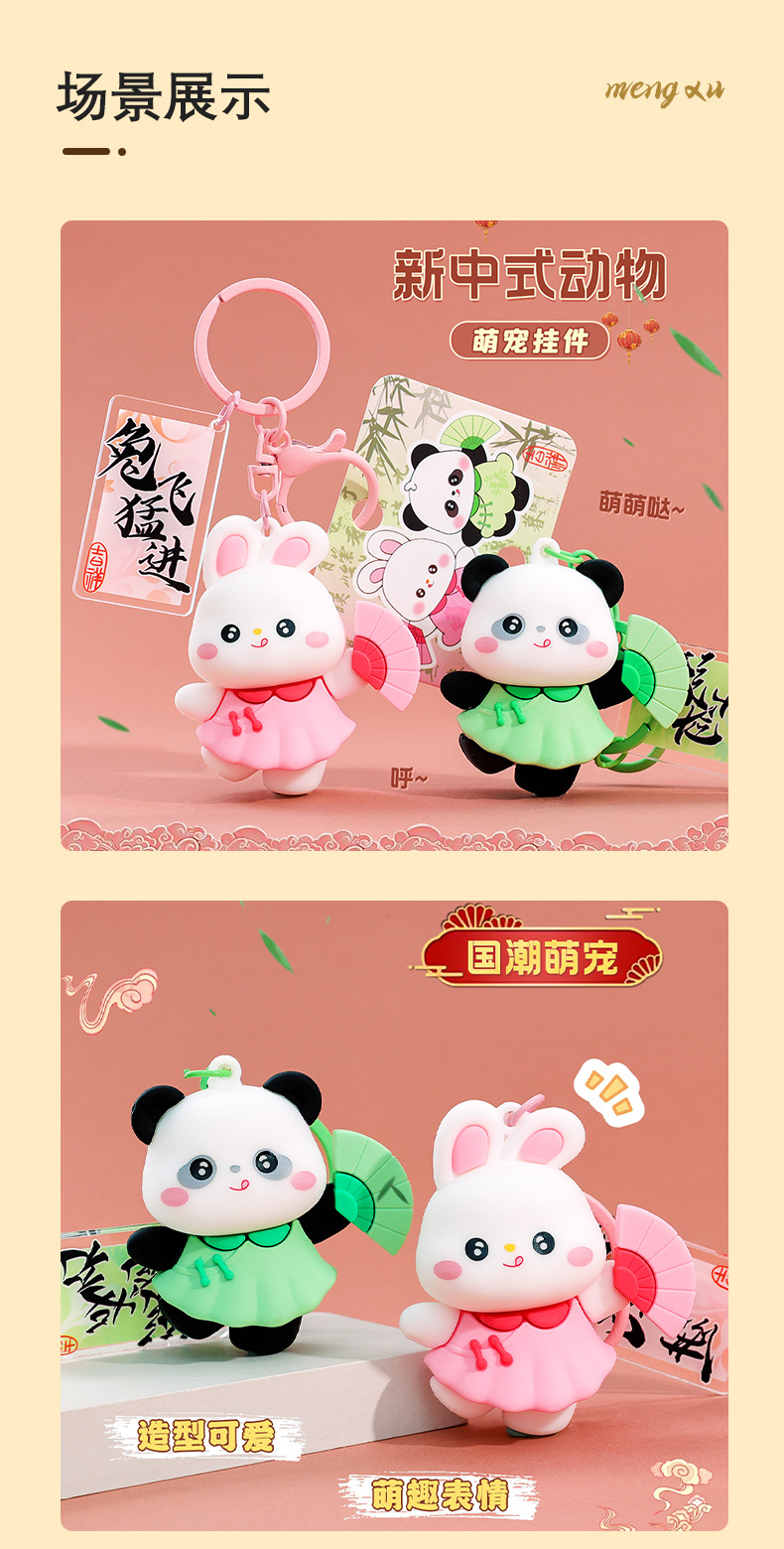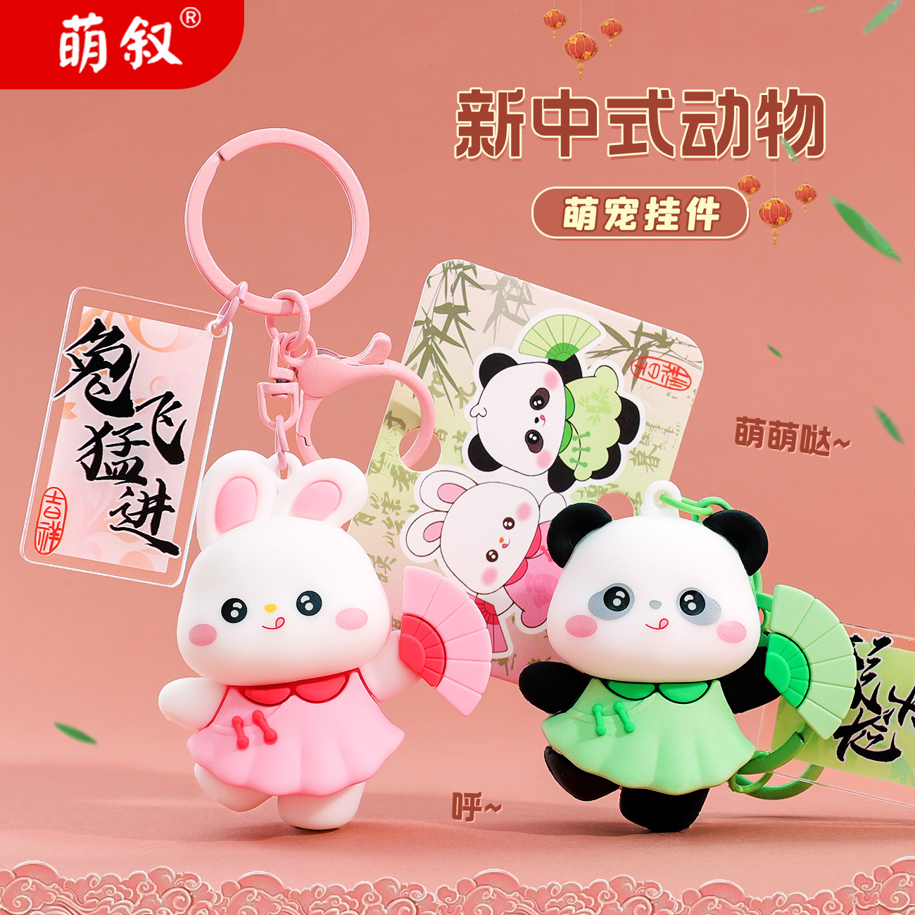 Móc khóa gấu trúc kiểu Trung Quốc mới mới dễ thương Búp bê gấu trúc nhỏ cặp đôi túi sách trang trí mặt dây chuyền quà tặng sáng tạo