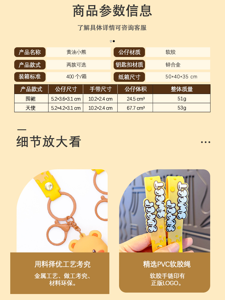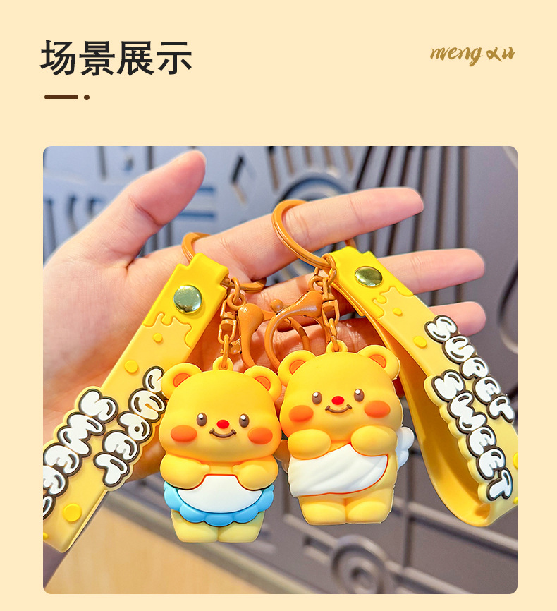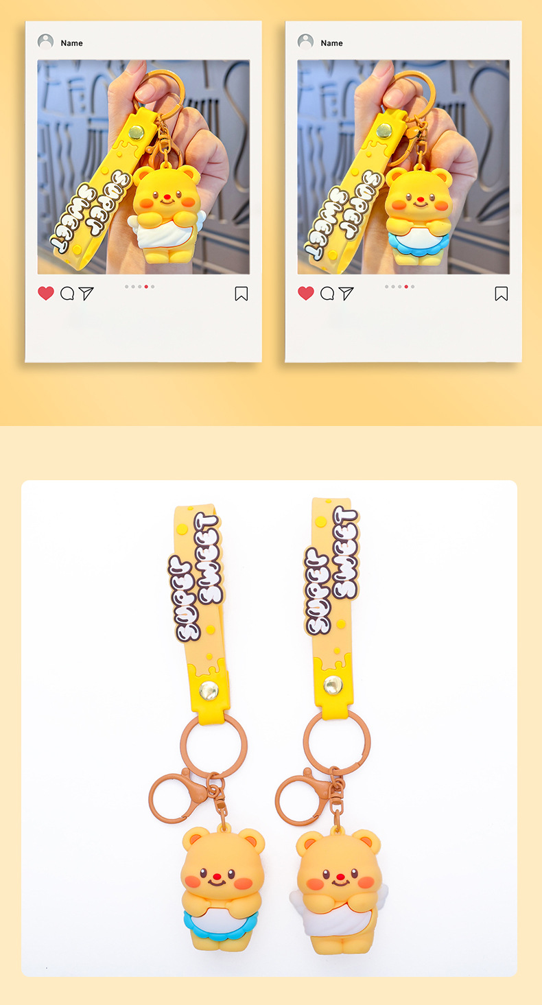 Móc khóa hoạt hình gấu dễ thương cặp đôi xu hướng búp bê cặp sách đồ trang trí móc khóa xe hơi Mặt dây chuyền Quà Tặng bán buôn