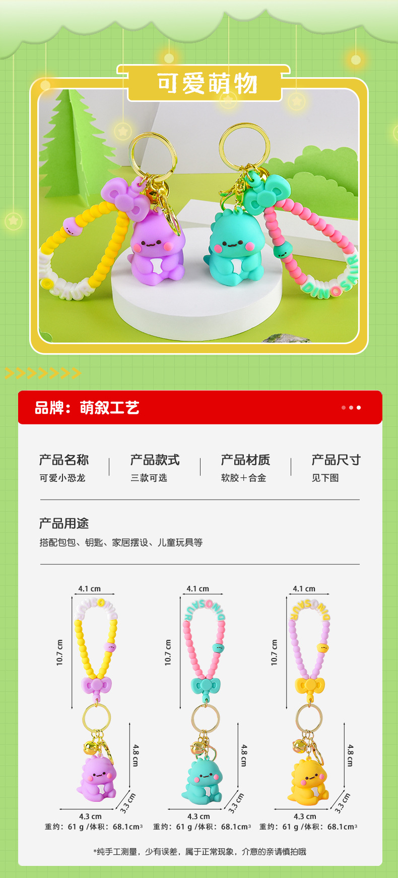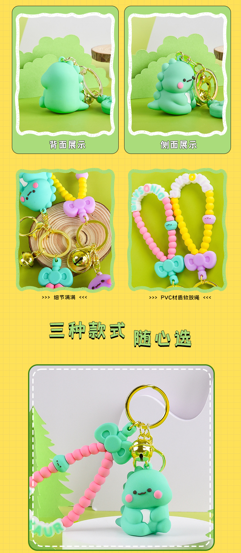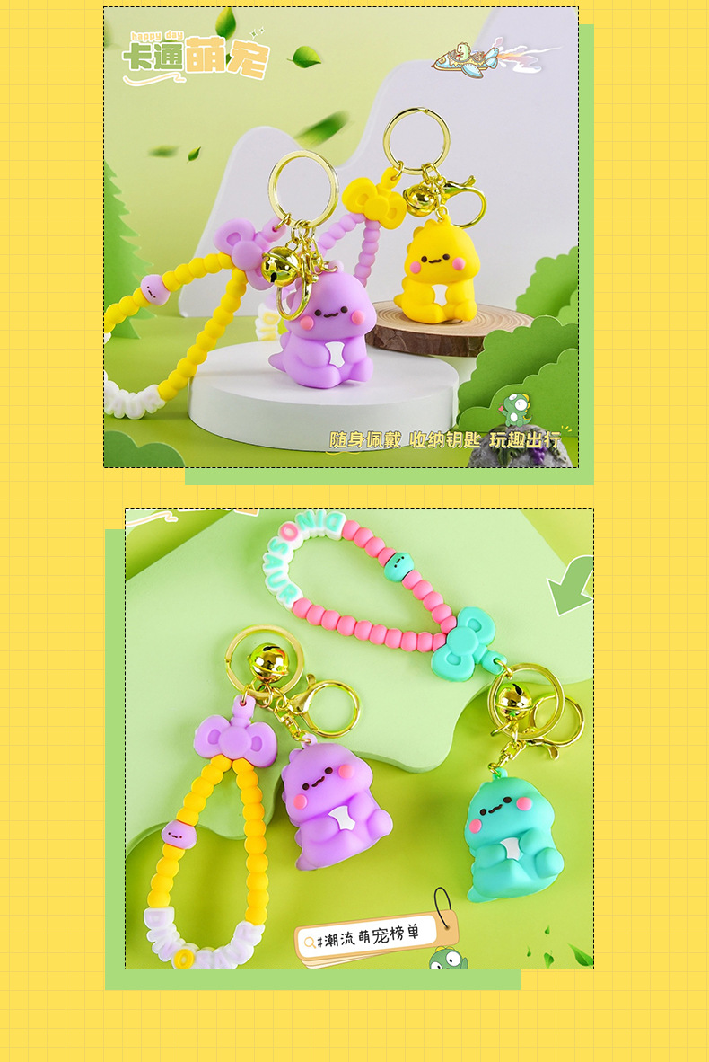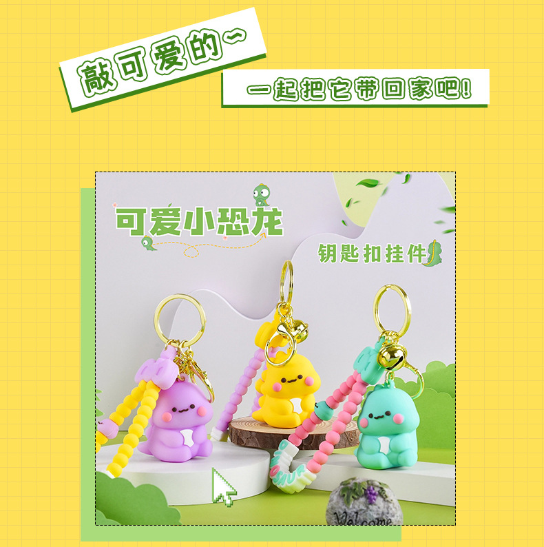 Móc khóa hoạt hình khủng long nhỏ sáng tạo, đồ trang trí cặp sách học sinh búp bê dễ thương cho nữ, đồ treo móc khóa xe hơi tinh tế