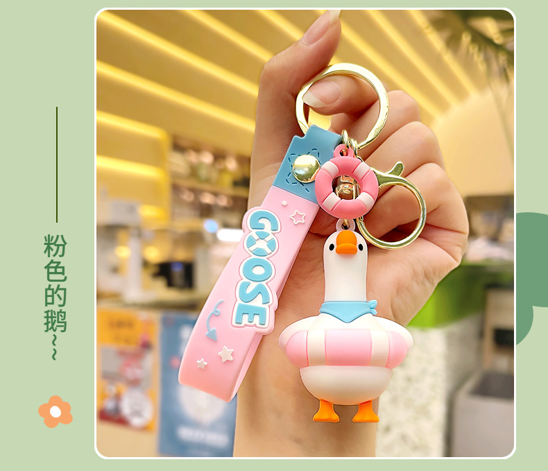 Móc khóa hoạt hình ngỗng ngỗng mới móc khóa nữ búp bê dễ thương cặp sách Mặt dây chuyền chìa khóa xe hơi bán buôn Quà Tặng thời trang