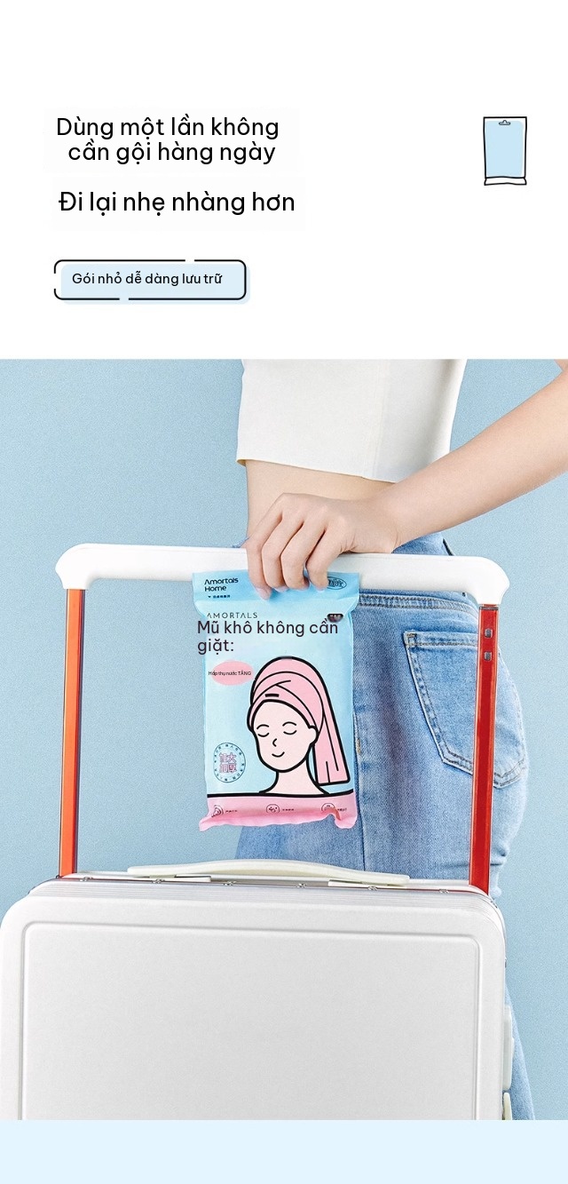 Mũ ủ khô tóc Amortals khăn lau tóc dùng 1 lần