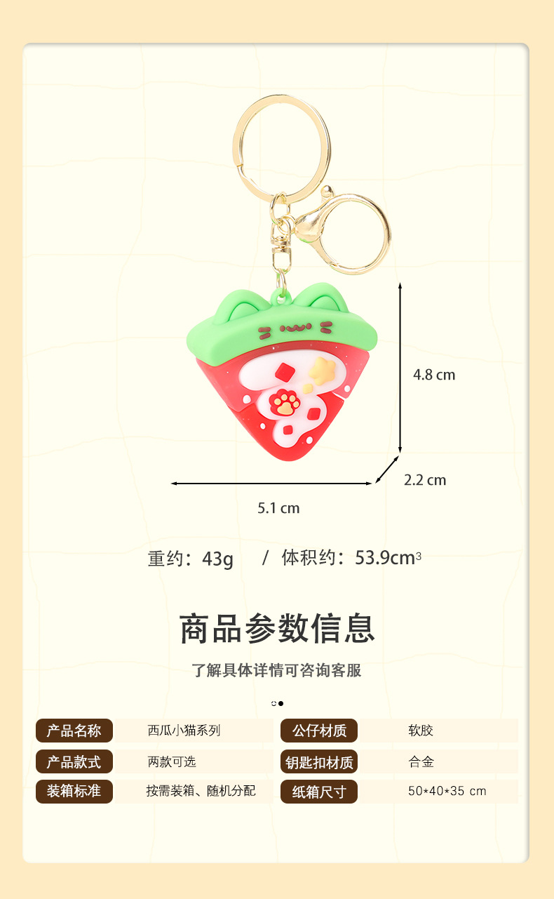 Mùa hè dễ thương dưa hấu mèo con loạt cao su mềm móc khóa cặp sách Mặt dây chuyền nhỏ hợp thời trang chơi máy búp bê quà tặng nhỏ bán buôn