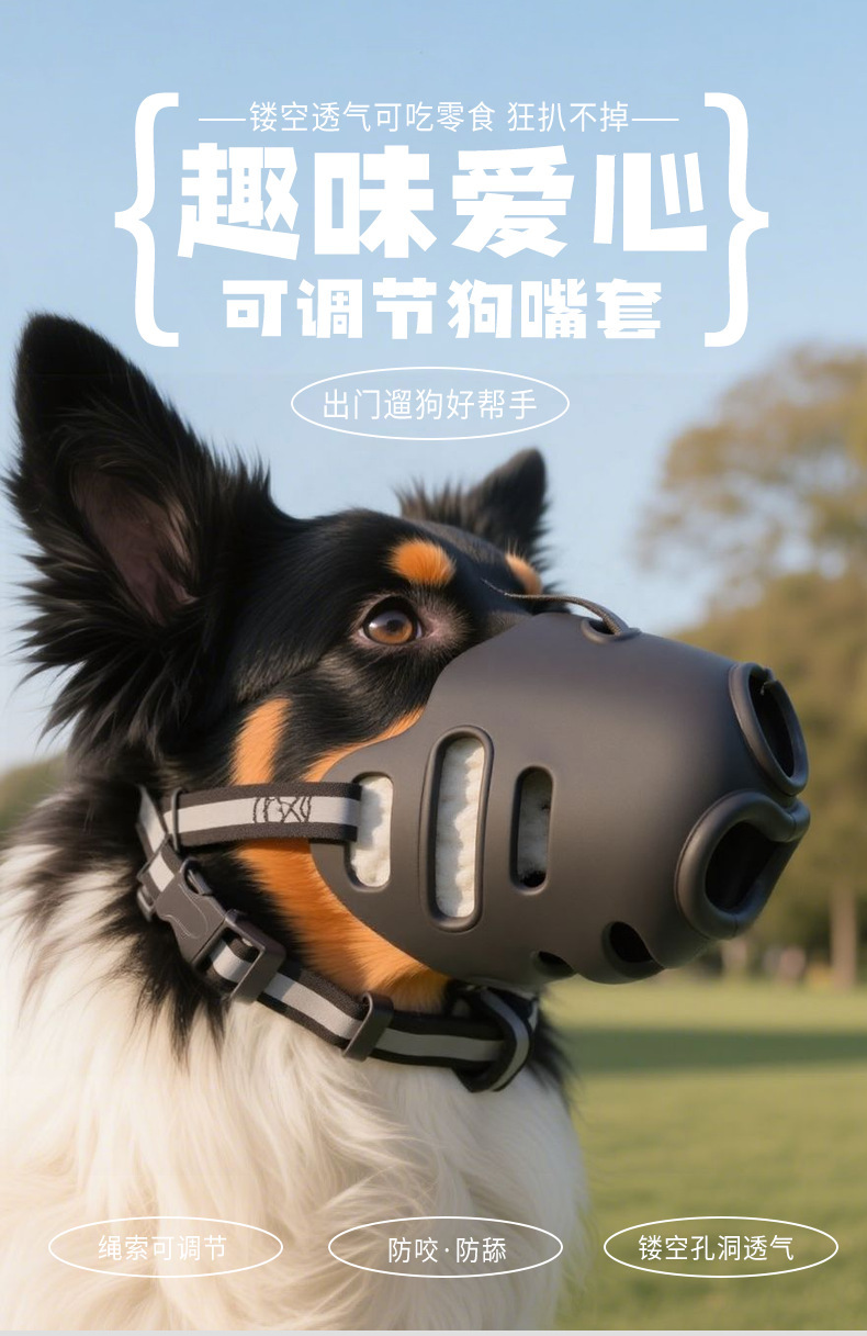Nắp Miệng chó Nắp miệng chống cắn cho chó có thể điều chỉnh nguyên bản thú vị tình yêu phản quang Nắp Miệng chó chống ăn ngoài trời