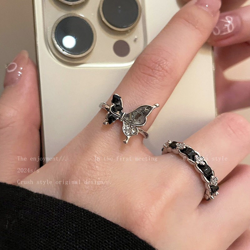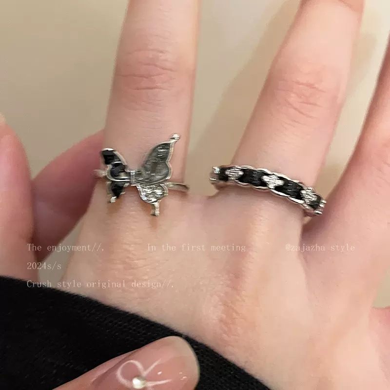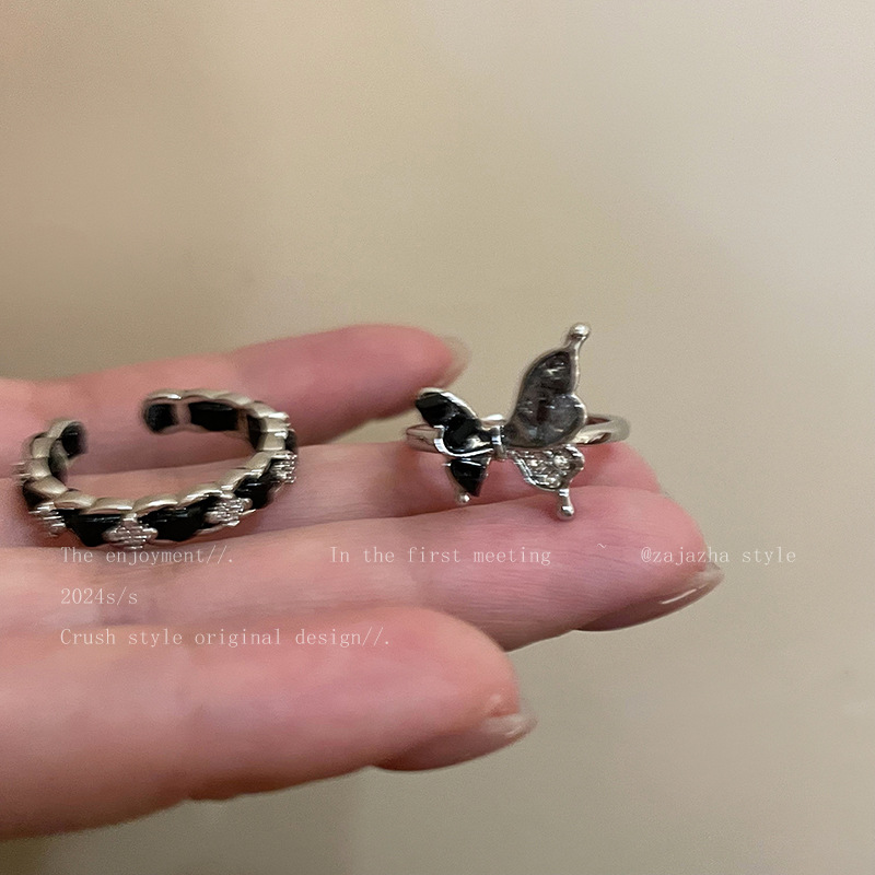 Nhẫn bướm tráng men nhỏ giọt cổ điển cao cấp thích hợp tất cả phù hợp tính khí nổi tiếng trên mạng cùng kiểu hở ngón trỏ Nhẫn bán buôn