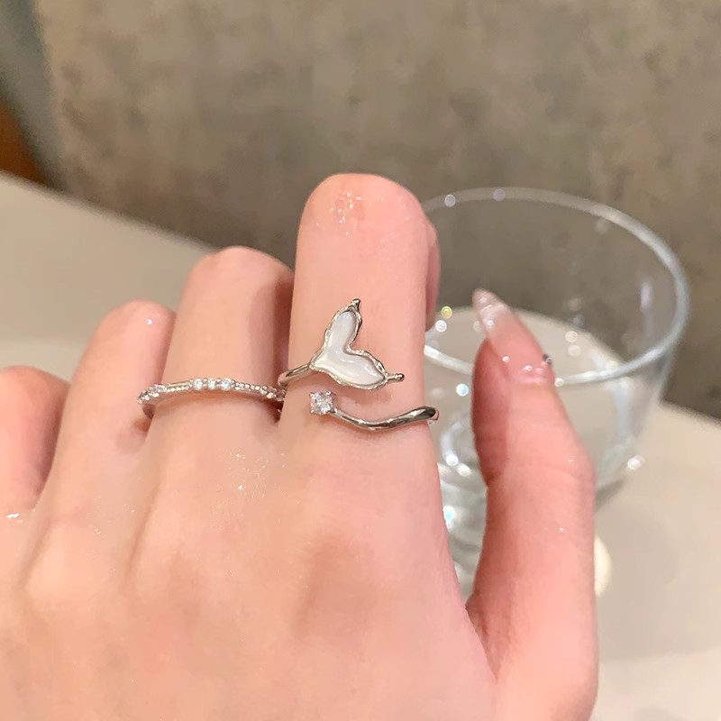 Nhẫn Đuôi Cá Thiết kế thích hợp sang trọng nhẹ, Nhẫn Ngón Tay Ăn kiêng có thể điều chỉnh hở khí chất dễ phối cho nữ bán buôn Nhẫn nổi tiếng trên mạng