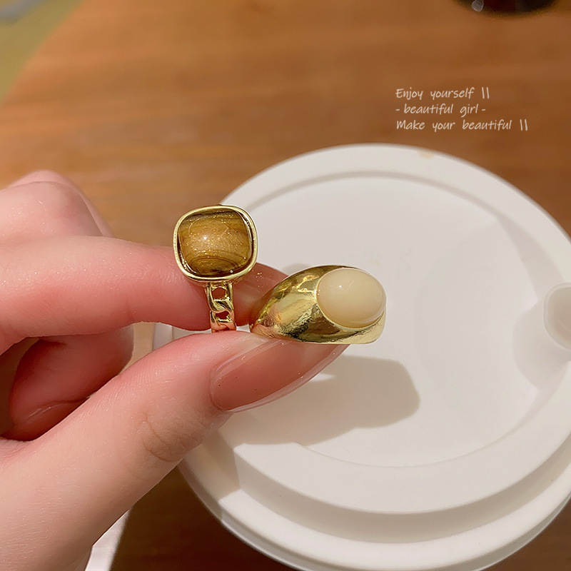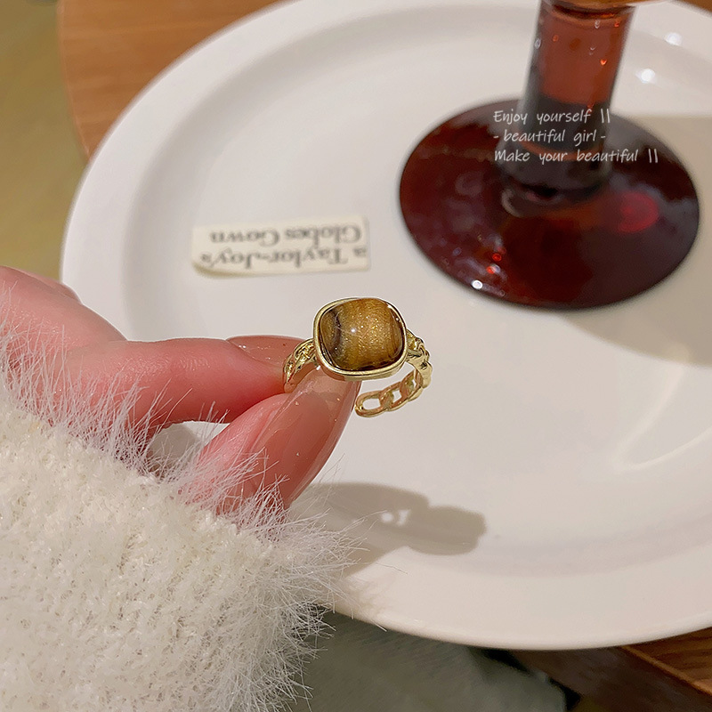 Nhẫn màu hổ phách cao cấp kiểu Pháp Nhẫn ngón trỏ khí chất dễ phối khí chất sang trọng nhẹ Instagram cho nữ nhẫn bạn thân học sinh