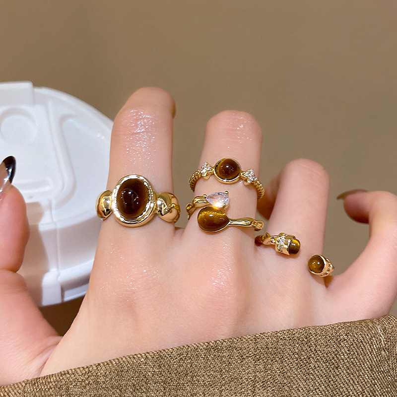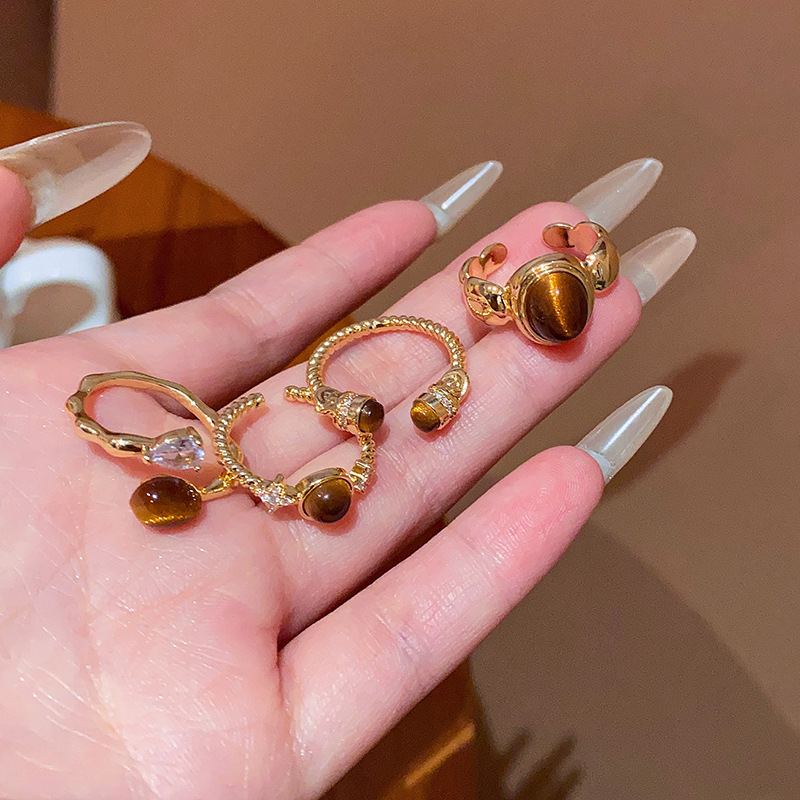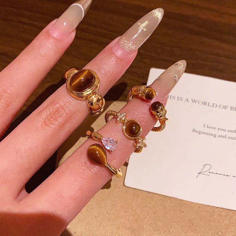 Nhẫn mở mắt hổ Maillard nhẫn Nhẫn ngón trỏ cao cấp phong cách Hồng Kông cổ điển cao cấp sang trọng nhẹ cho nữ