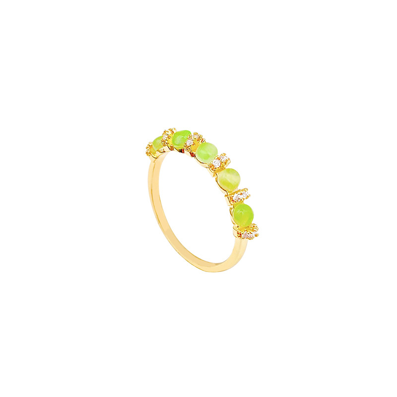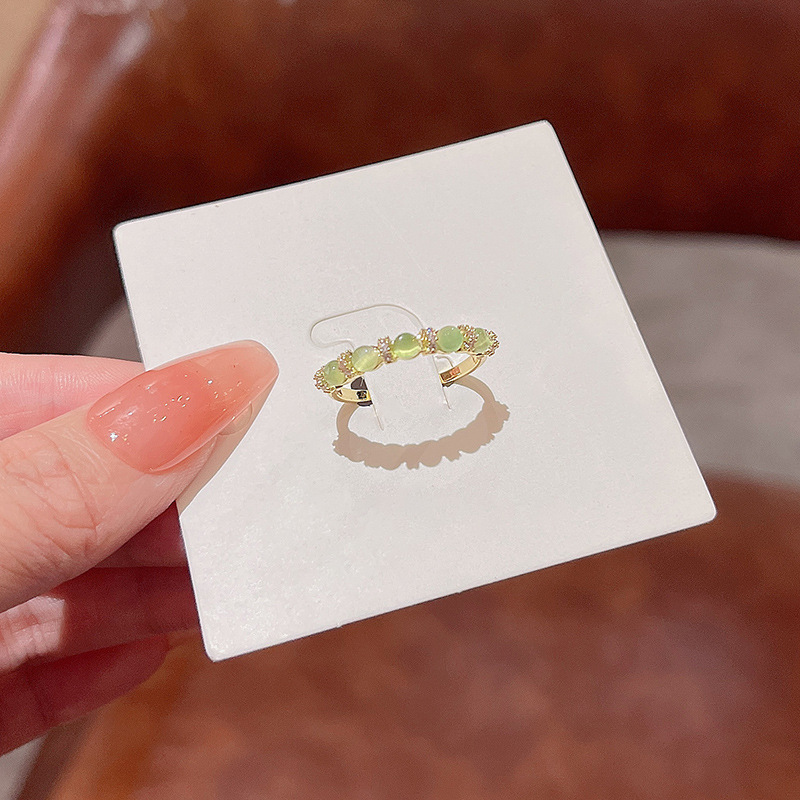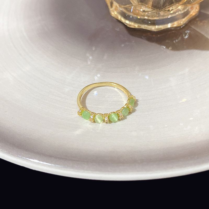 Nhẫn ngọc bích màu xanh lá cây đơn giản tươi mới mẫu mới Hàn Quốc nhẫn Nhẫn ngón trỏ cùng kiểu hot trên mạng khí chất dễ phối nữ