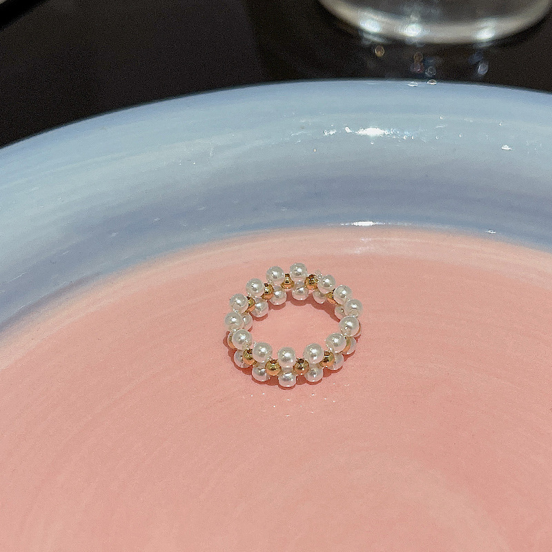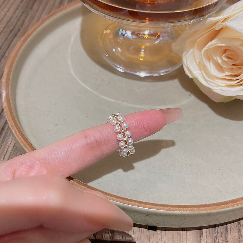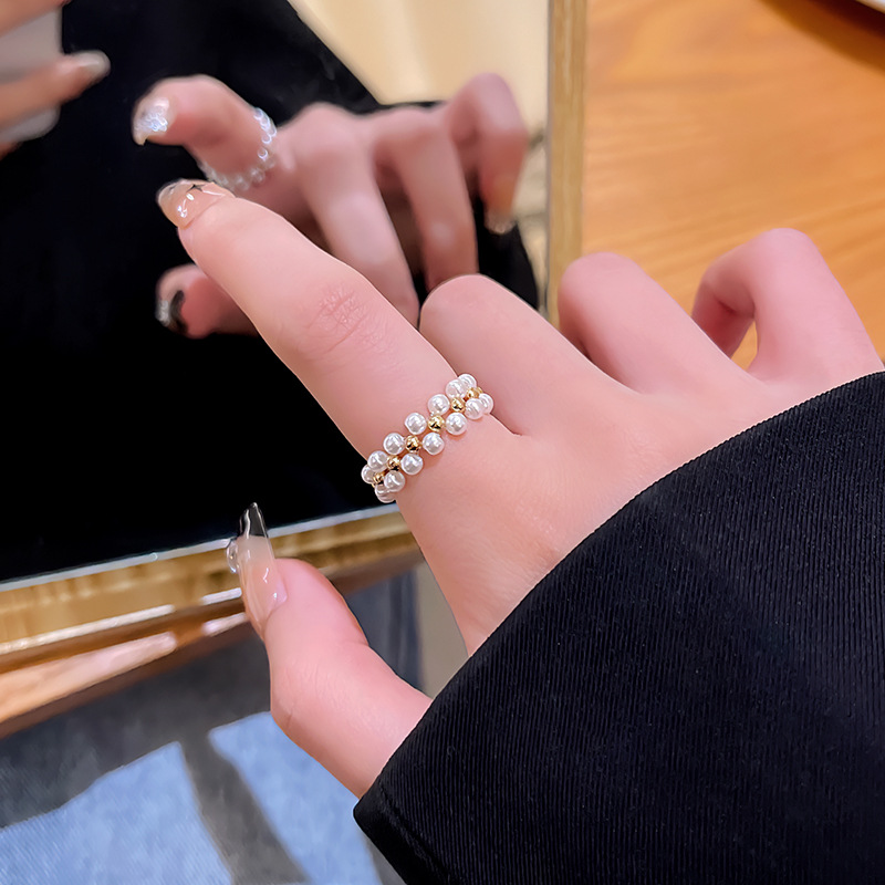 Nhẫn ngọc trai hai lớp dây đàn hồi tính khí dễ phối ins cho nữ thiết kế cao cấp cảm giác nhẹ sang trọng Nhẫn Ngón tay thực phẩm thích hợp bán buôn