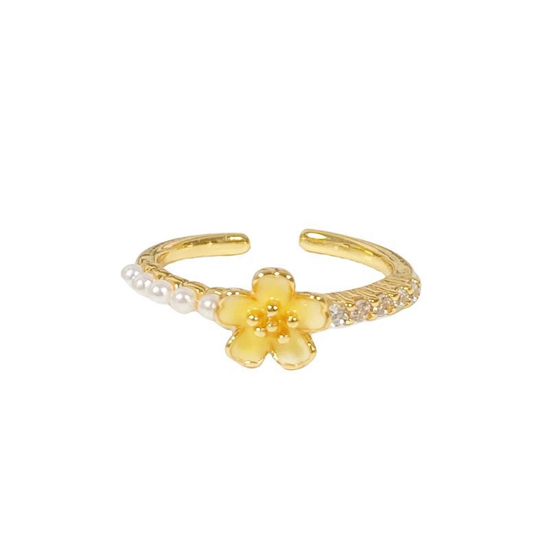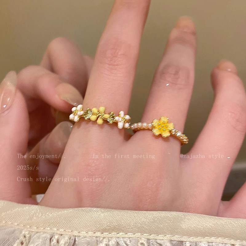Nhẫn ngọc trai hoa cúc nhỏ, Nhẫn ngón trỏ cao cấp thích hợp sang trọng nhẹ cho nữ, nhẫn cá tính thời trang mẫu mới 2025