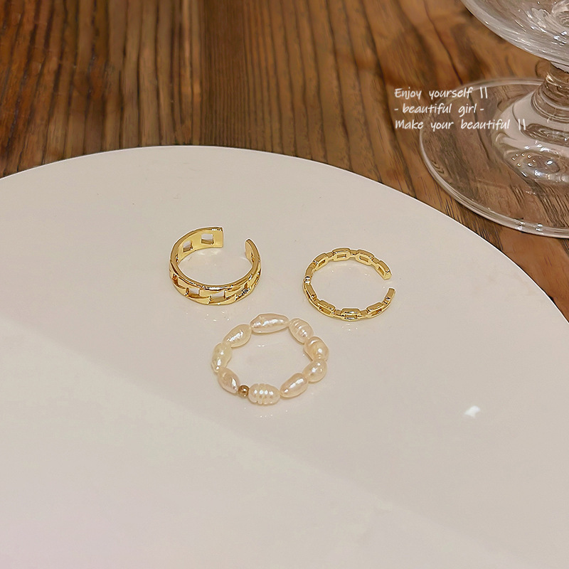 Nhẫn ngọc trai khí chất dễ phối mẫu mới Hàn Quốc cho nữ nhẫn ngón trỏ rỗng có thể điều chỉnh mở thời trang Instagram bán buôn