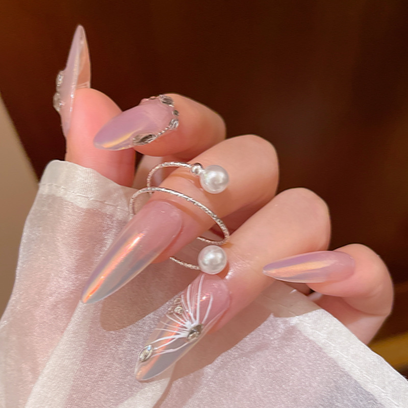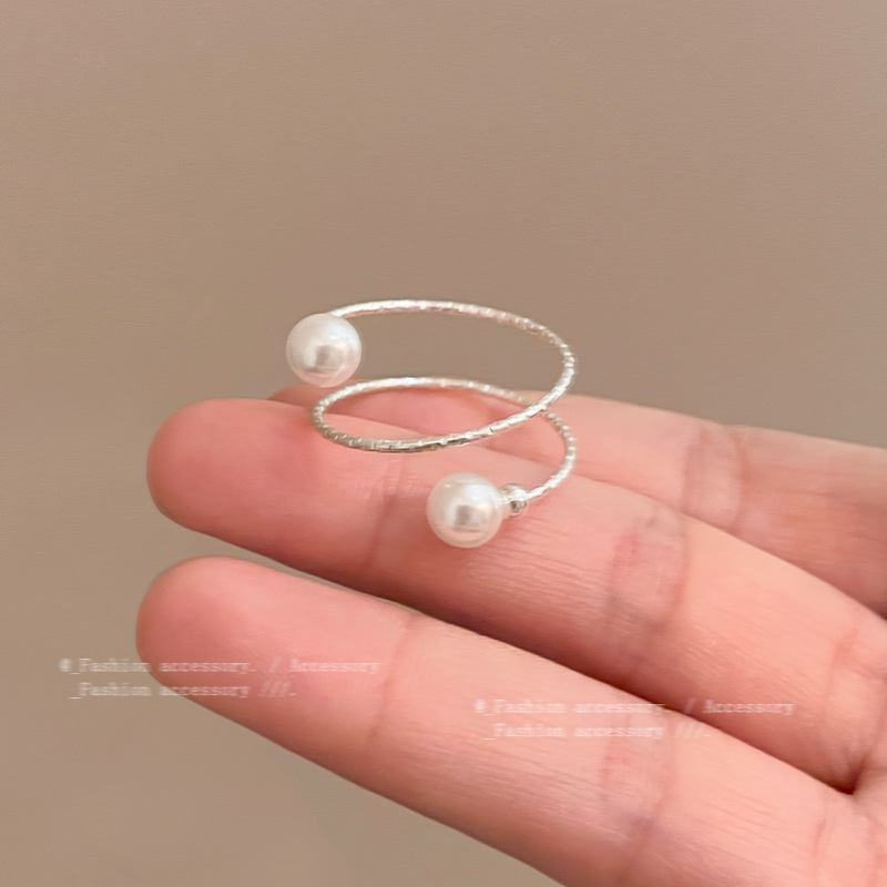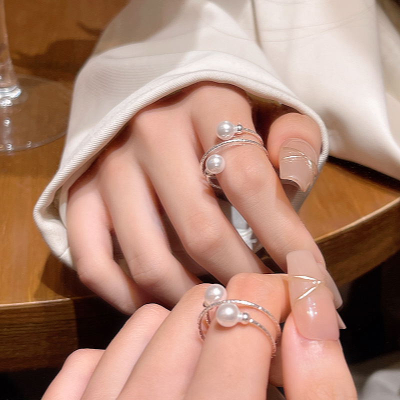 Nhẫn ngọc trai to đơn giản kiểu cao cấp sang trọng nhẹ nhàng dành cho nữ nhẫn ngón trỏ xếp chồng nhiều lớp