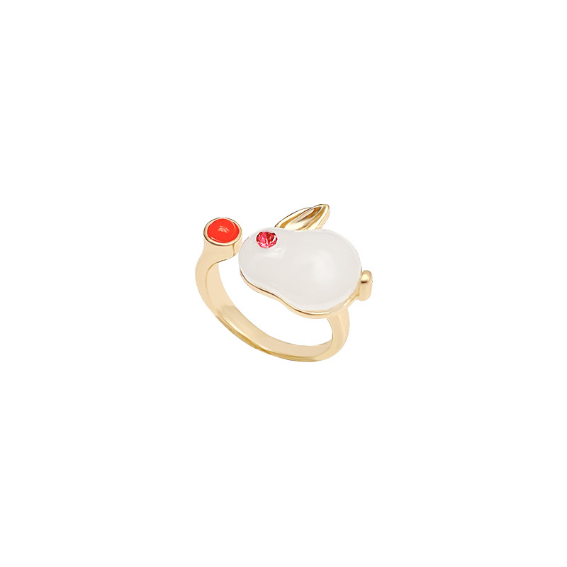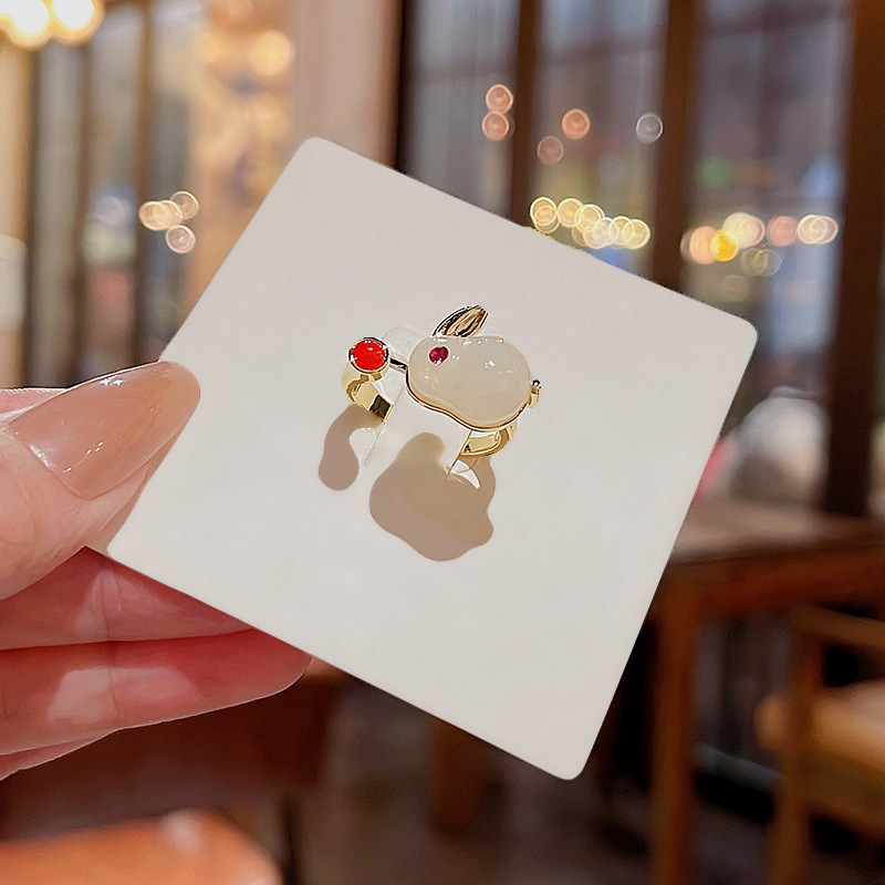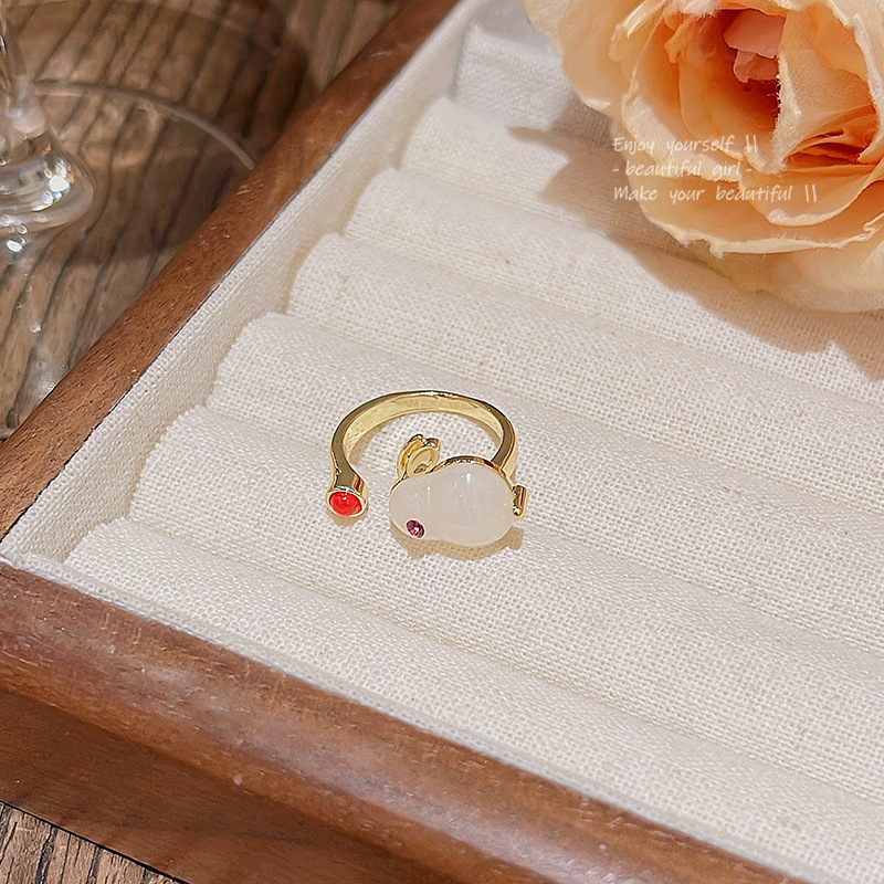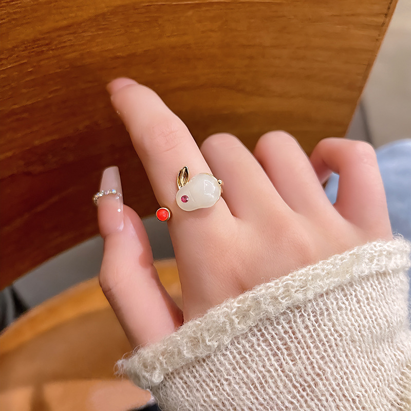 Nhẫn Thỏ Ngọc mới năm bản mệnh 2026, nhẫn thiết kế cao cấp phong cách cổ điển phong cách Trung Quốc