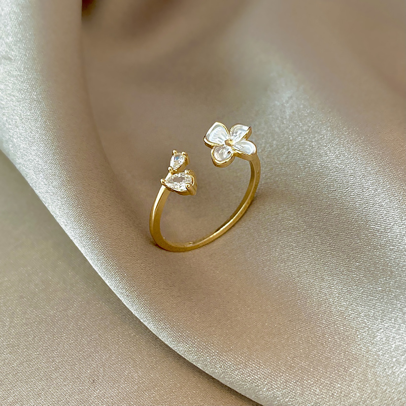 Nhẫn zircon Hoa khí chất sang trọng đơn giản Nhẫn ngón trỏ hot trên mạng thời trang