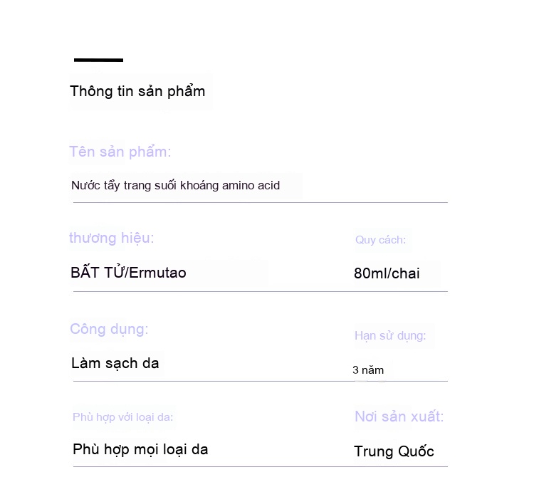 Tên sản phẩm: Nước tẩy trang suối nước nóng Lọc axit amin nho Ermu