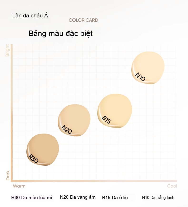 N10 da trắng lạnh ,N20 da vàng ấm ,B15 da ô liu |