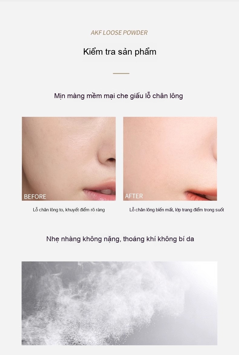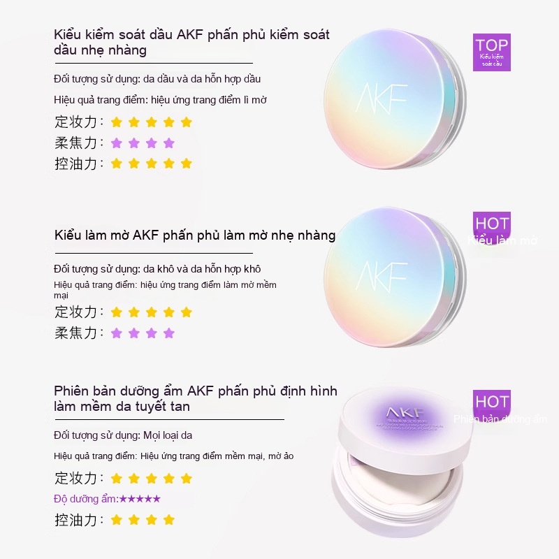 Phấn phủ kiềm dầu AKF, mỏng nhẹ, tinh tế, chống thấm nước, chống mồ hôi, kiểm soát dầu, mềm mịn, sương mù Nhẹ, khóa cảm giác mờ mờ
