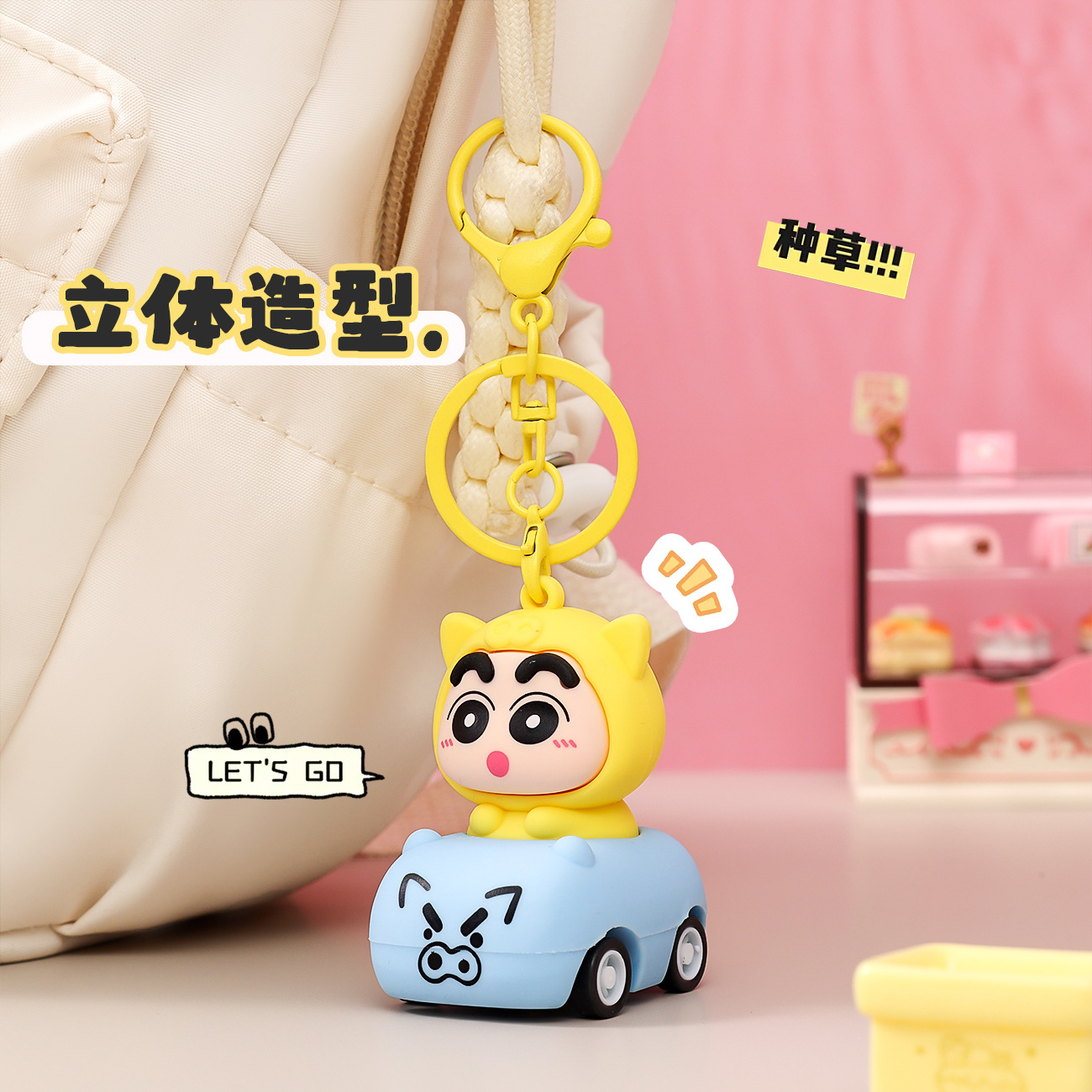 Phim hoạt hình hoạt hình hoạt hình Mới Nhỏ kéo lại Xe móc Khóa Sáng Tạo ba chiều búp bê học sinh cặp sách Mặt dây chuyền nhỏ gian hàng