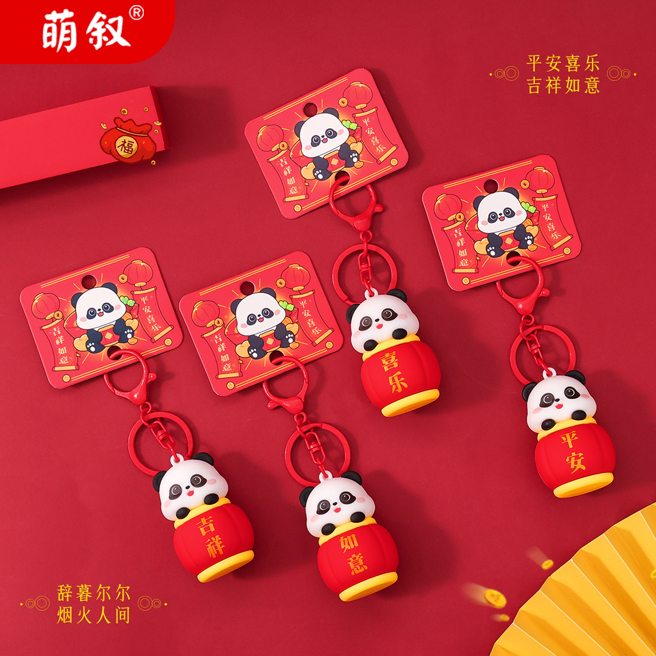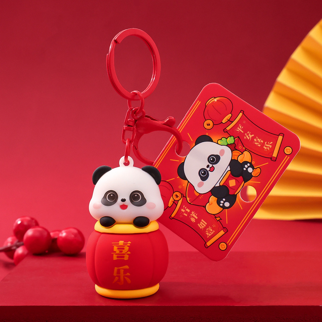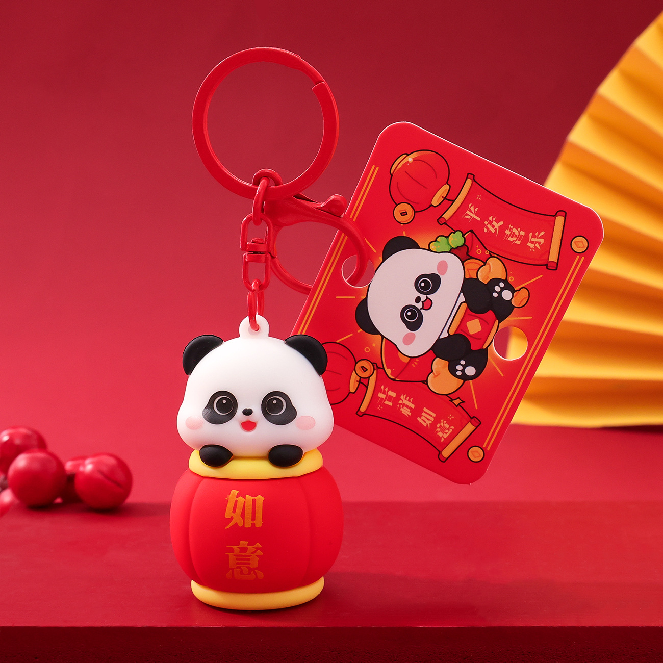 Phim hoạt hình năm mới đèn lồng gấu trúc Búp Bê Móc Khóa Cặp đôi gấu trúc dễ thương Mặt dây chuyền Túi phụ kiện quà tặng nhỏ bán buôn