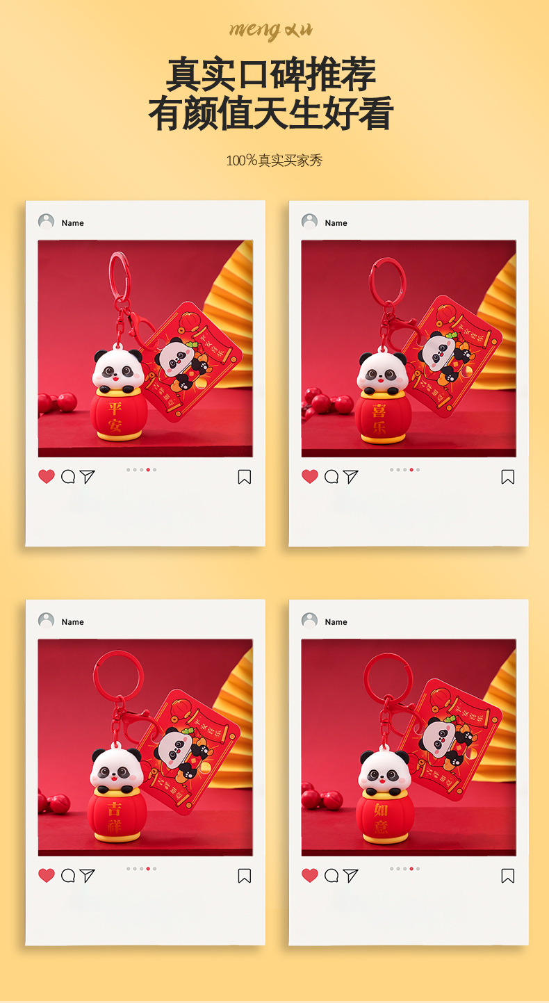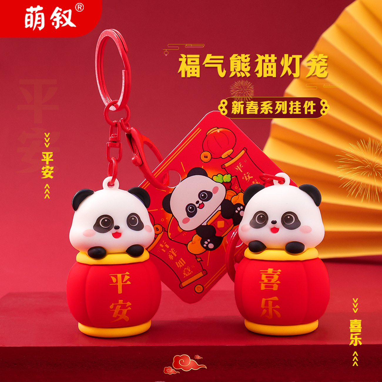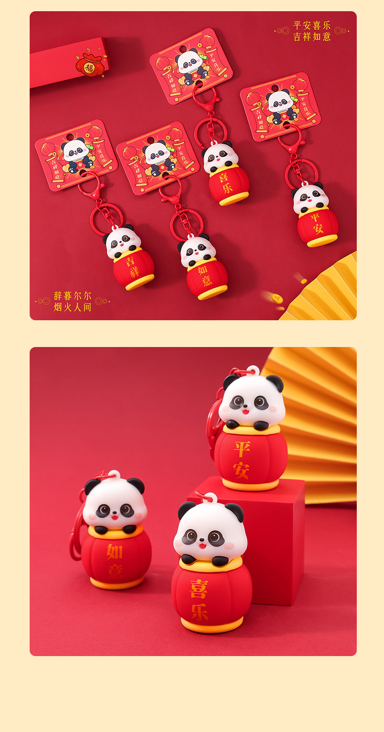 Phim hoạt hình năm mới đèn lồng gấu trúc Búp Bê Móc Khóa Cặp đôi gấu trúc dễ thương Mặt dây chuyền Túi phụ kiện quà tặng nhỏ bán buôn