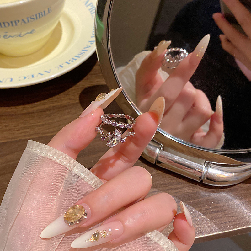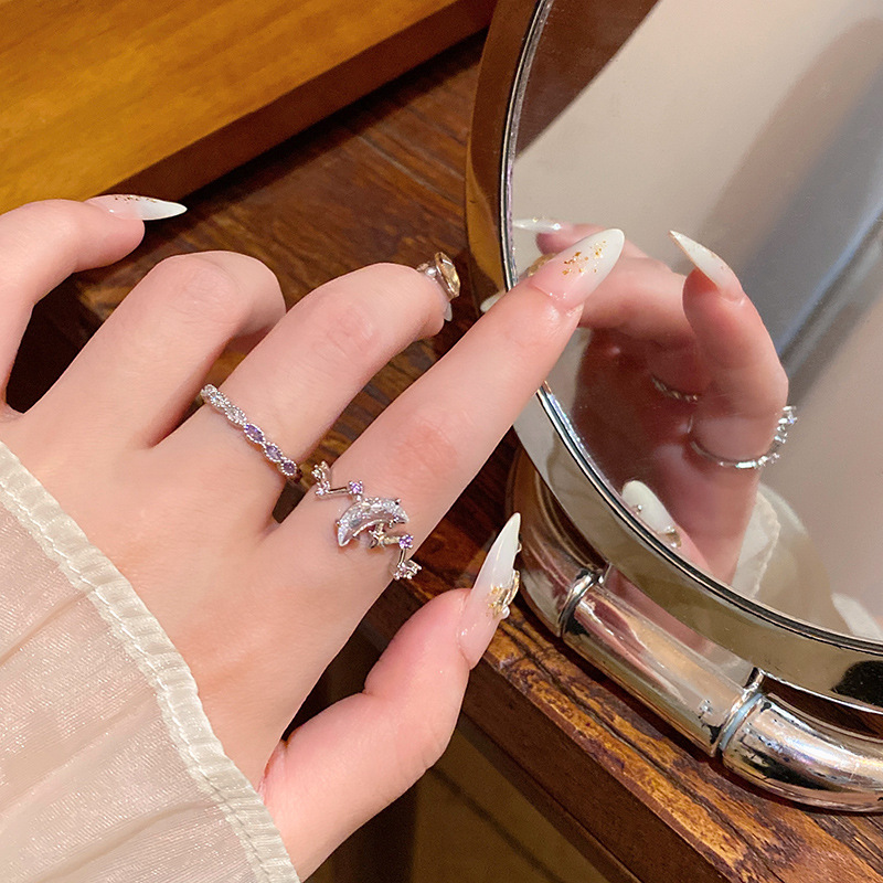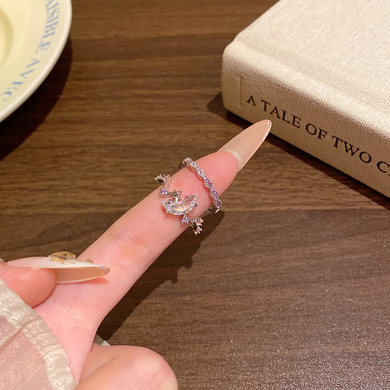 Phong cách Hàn Quốc phong cách nóng bỏng tinh tế Nhẫn mở mặt trăng sao Zircon tinh tế thời trang nữ đa năng khí chất Nhẫn ngón trỏ nạm kim cương