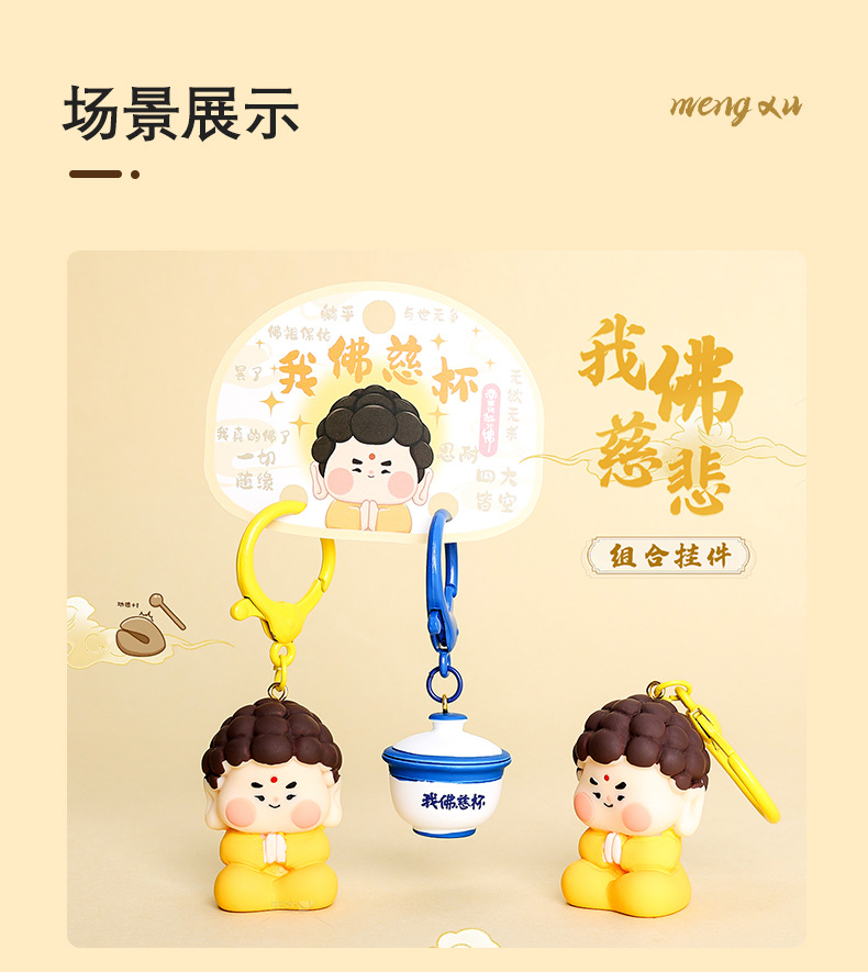 Sáng tạo nổi tiếng trên mạng Tôi Phật từ bi Phim hoạt hình Búp bê Móc khóa Cặp đôi Văn hóa và Sáng tạo Quà Tặng Nhỏ Móc khóa Mặt Dây chuyền Nhỏ Bán buôn