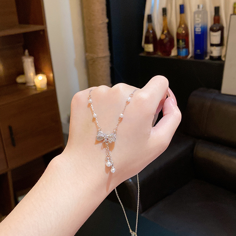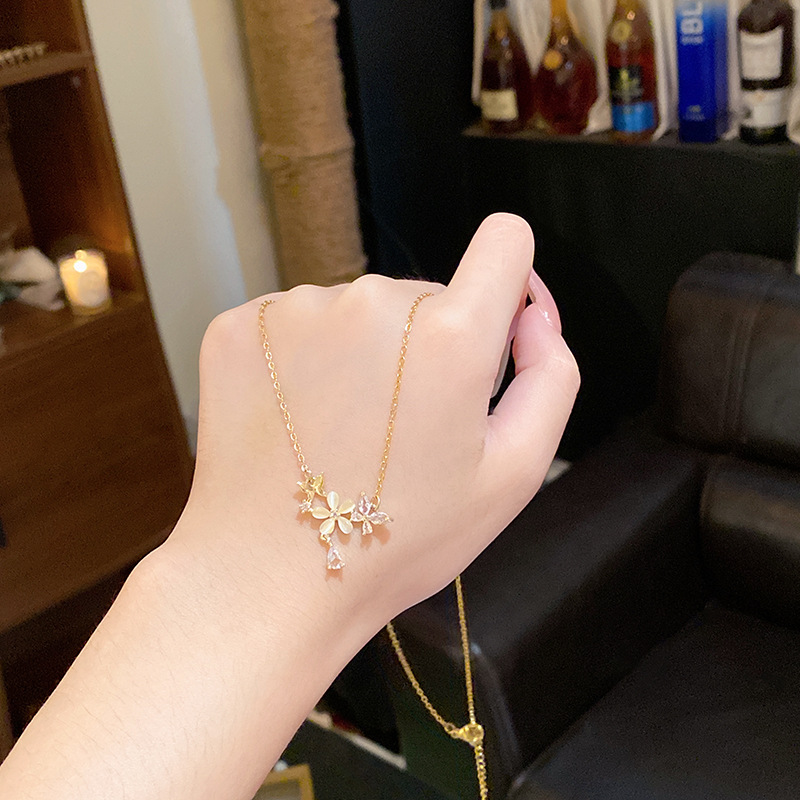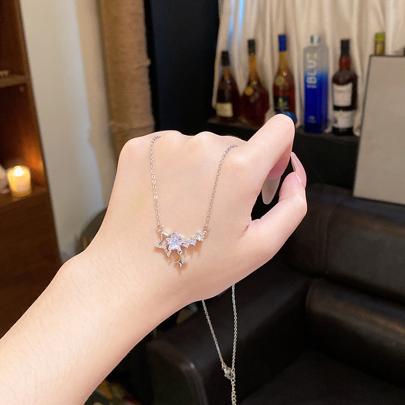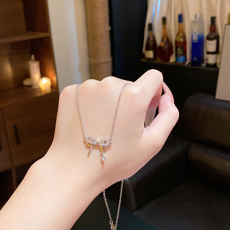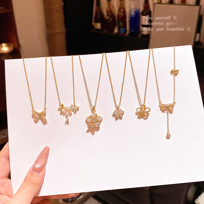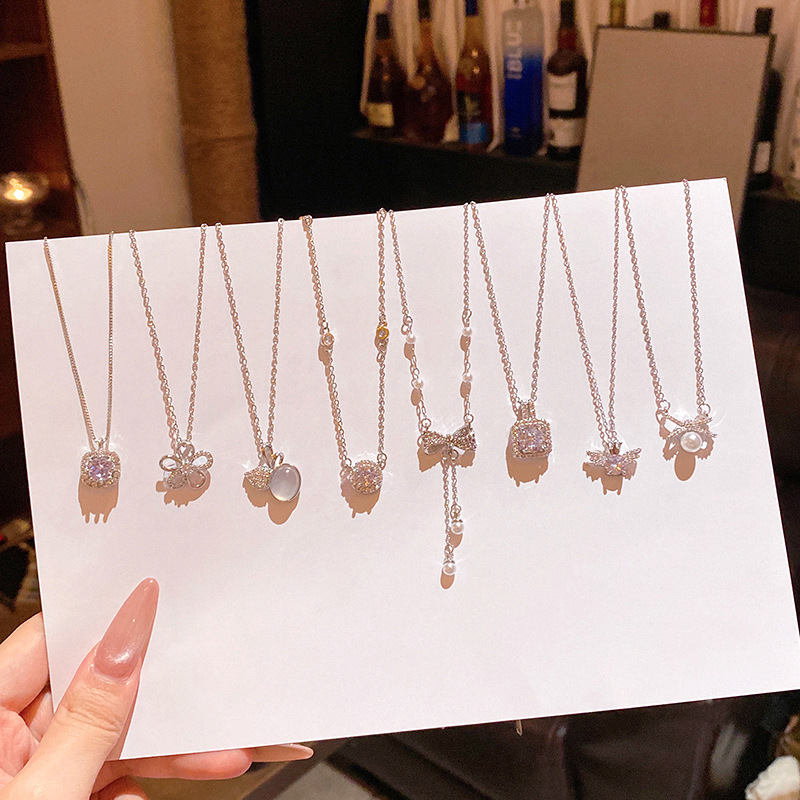 Sang trọng nhẹ, Dây chuyền thép titan cao cấp, Dây Chuyền xương đòn Zircon siêu nhỏ tinh tế, dây chuyền cổ nổi tiếng trên mạng khí chất dễ phối thời trang