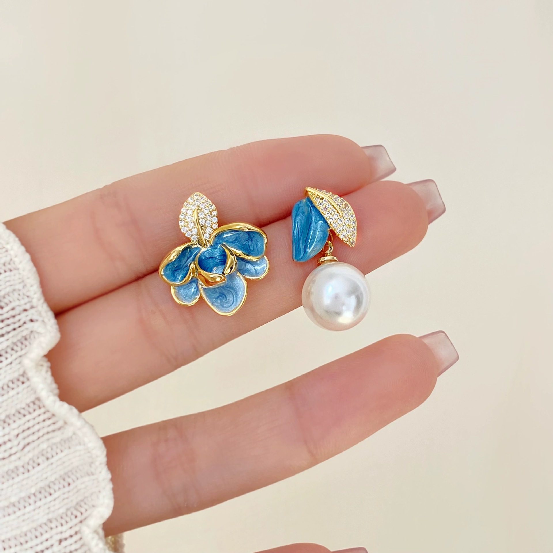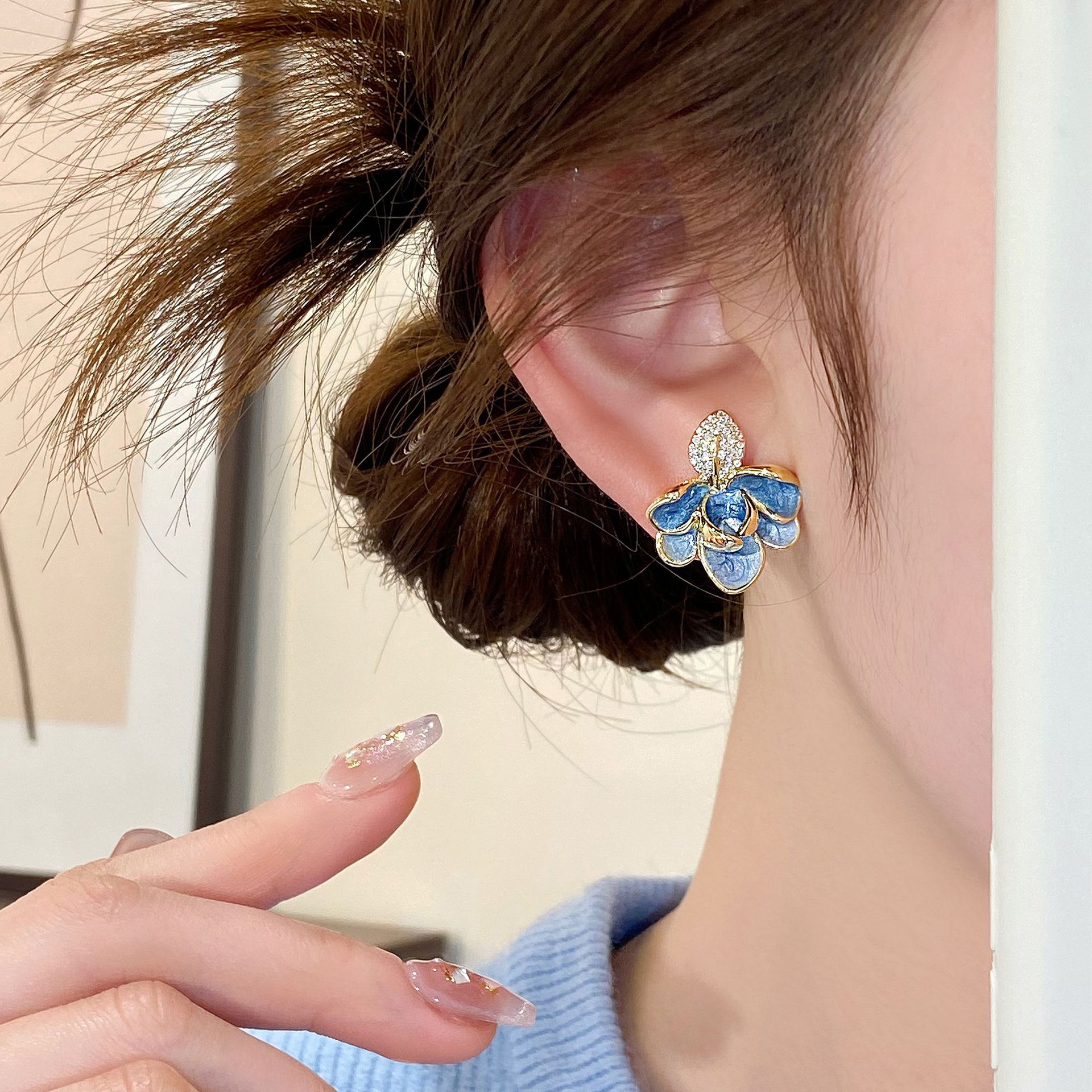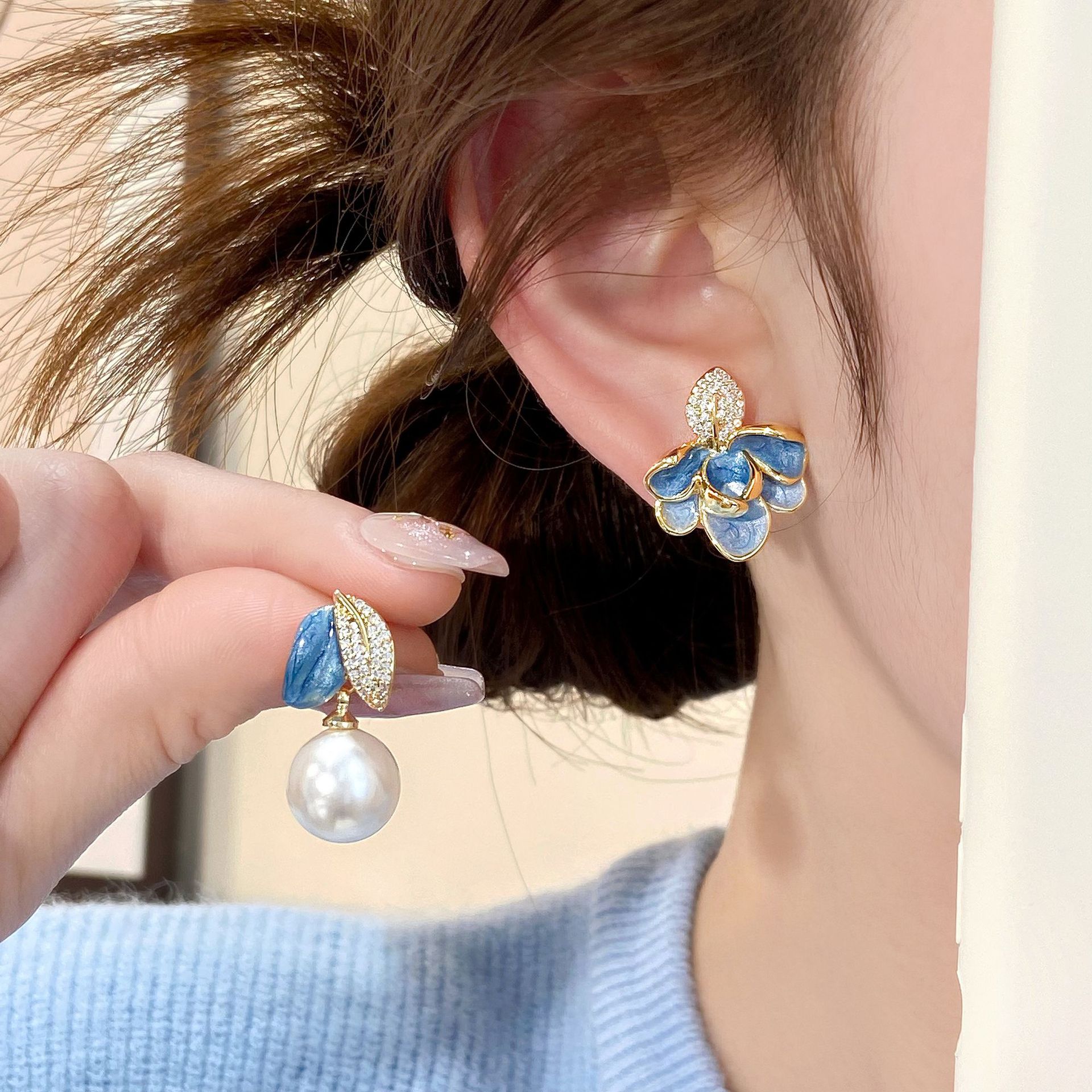 Sang trọng nhẹ Hoa tai tráng men nhỏ giọt men bất đối xứng thời trang tất cả phù hợp khí chất cao cấp Hoa tai bán buôn
