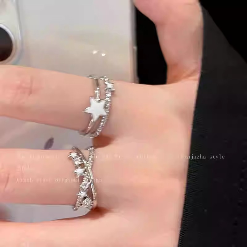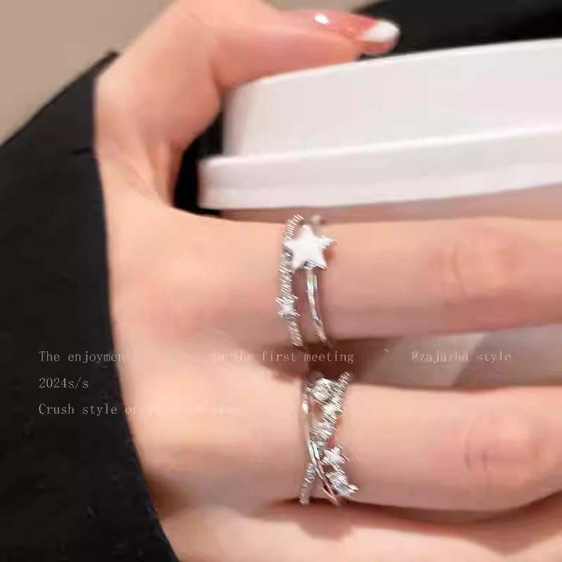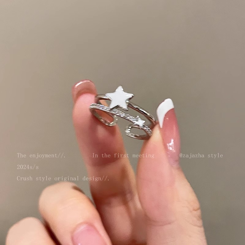 Sang trọng nhẹ nhàng, nhỏ, cảm giác cao cấp, NhẫN Sao hai lớp, nhẫn ngón trỏ Zircon có thể điều chỉnh, nhẫn cùng kiểu Sách Màu Đỏ Nhỏ