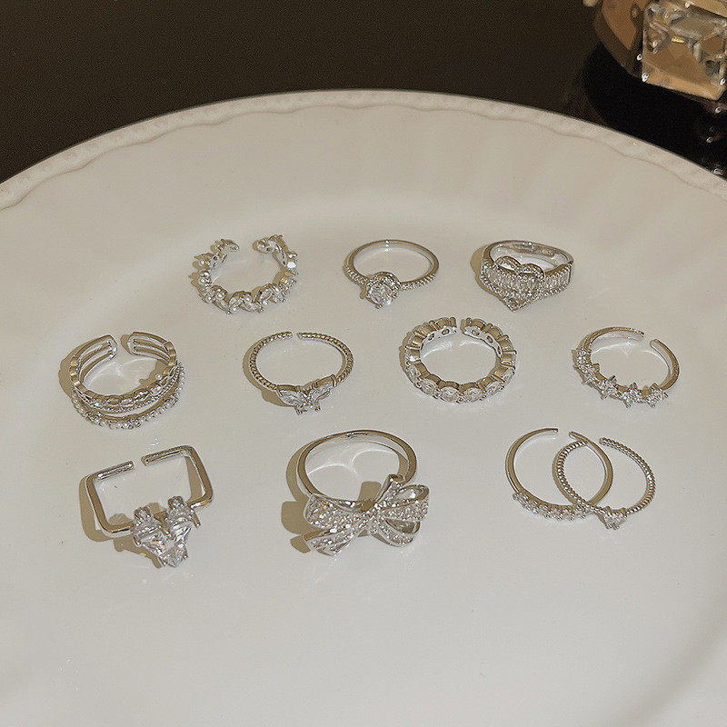 Sang trọng nhẹ nhàng, nhỏ lẻ, nhẫn bướm khảm Zircon, thiết kế mở hợp thời trang Instagram, Nhẫn ngón trỏ, Bán Buôn