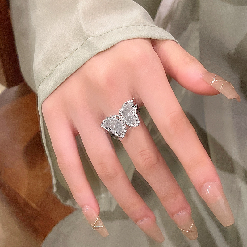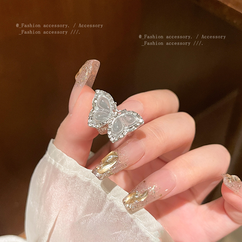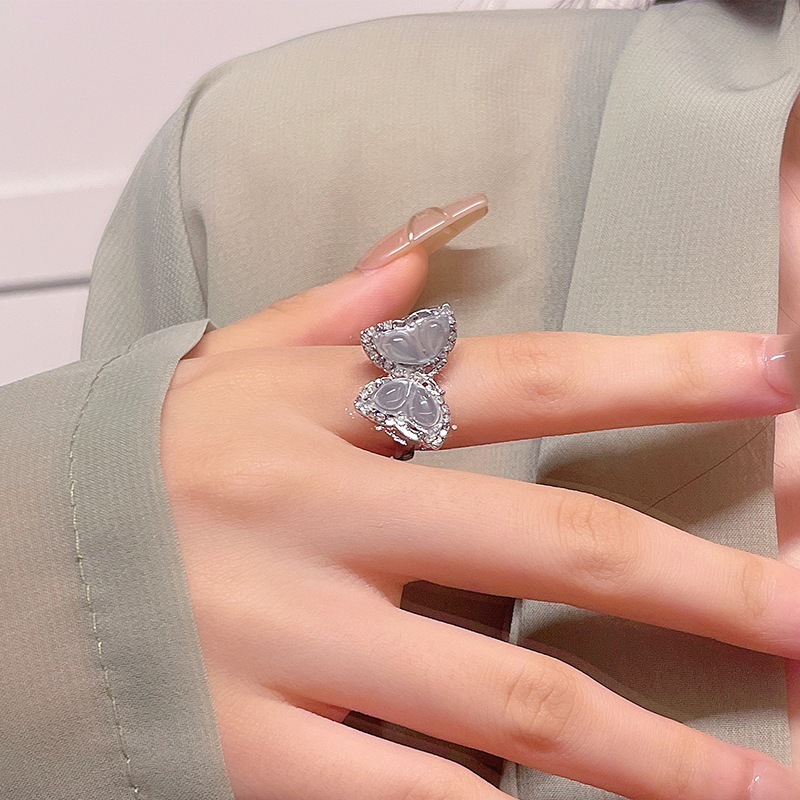 Sang trọng nhẹ nhàng, nhỏ màu xanh Zircon pha lê, nhẫn bướm, Nhẫn Ngón Tay Ăn kiêng có thể điều chỉnh mở, trang sức tay cùng kiểu trên mạng