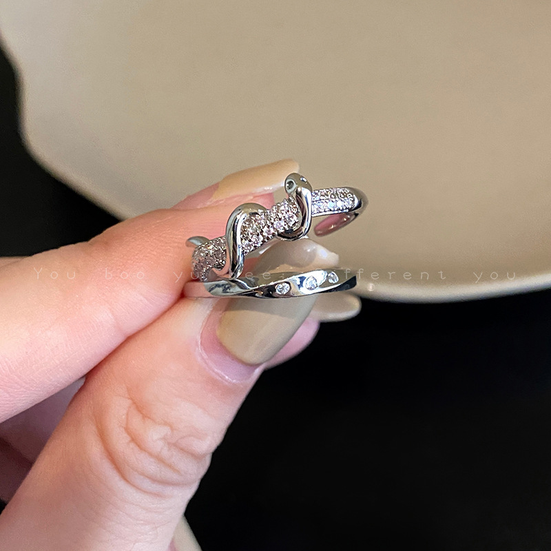 Sang trọng nhẹ nhàng, nhỏ, nhẫn hình rắn đầy Kim Cương Zircon siêu lấp lánh, nhẫn ngón trỏ hở cảm giác cao cấp khí chất dễ phối đồ cho nữ