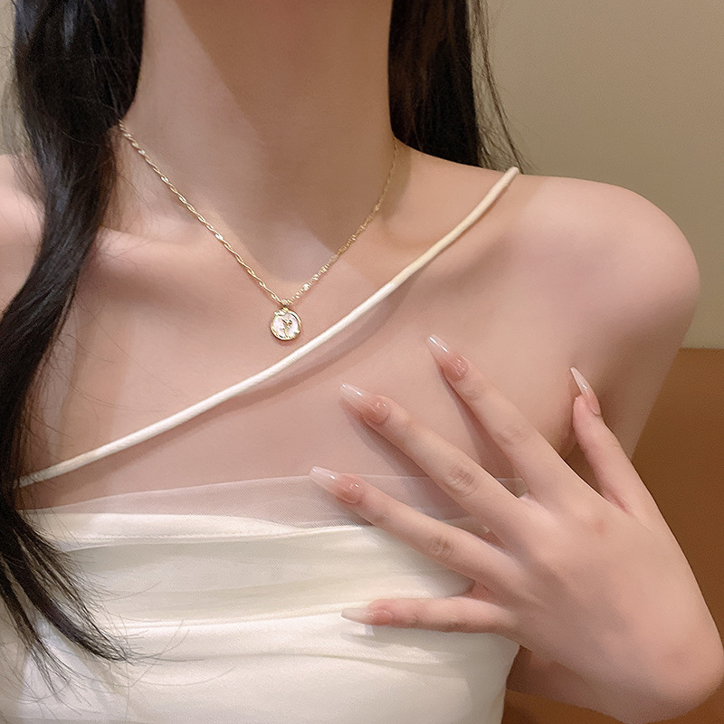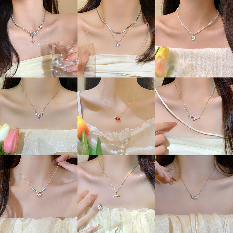 Sang trọng nhẹ nhàng, nhỏ, tất cả phù hợp, Vòng Cổ Ngọc Trai khí chất, siêu cổ tích, ngọt ngào và tươi mới, Vòng Cổ xương đòn thép titan Zircon, Vòng Cổ