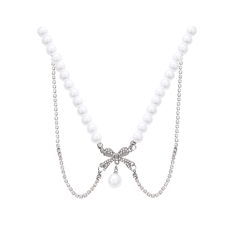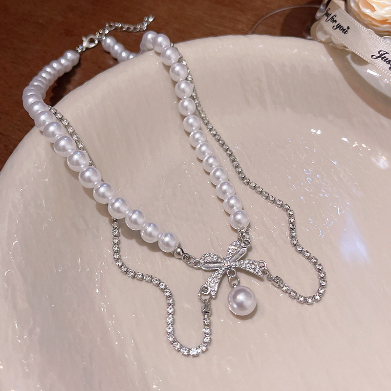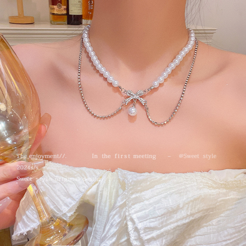Sang trọng nhẹ nhàng, quý cô và quý cô cùng một kiểu, Vòng Cổ Đeo Nơ gấp đôi, Vòng Cổ Ngọc Trai khí chất đa năng thời trang, Vòng Cổ