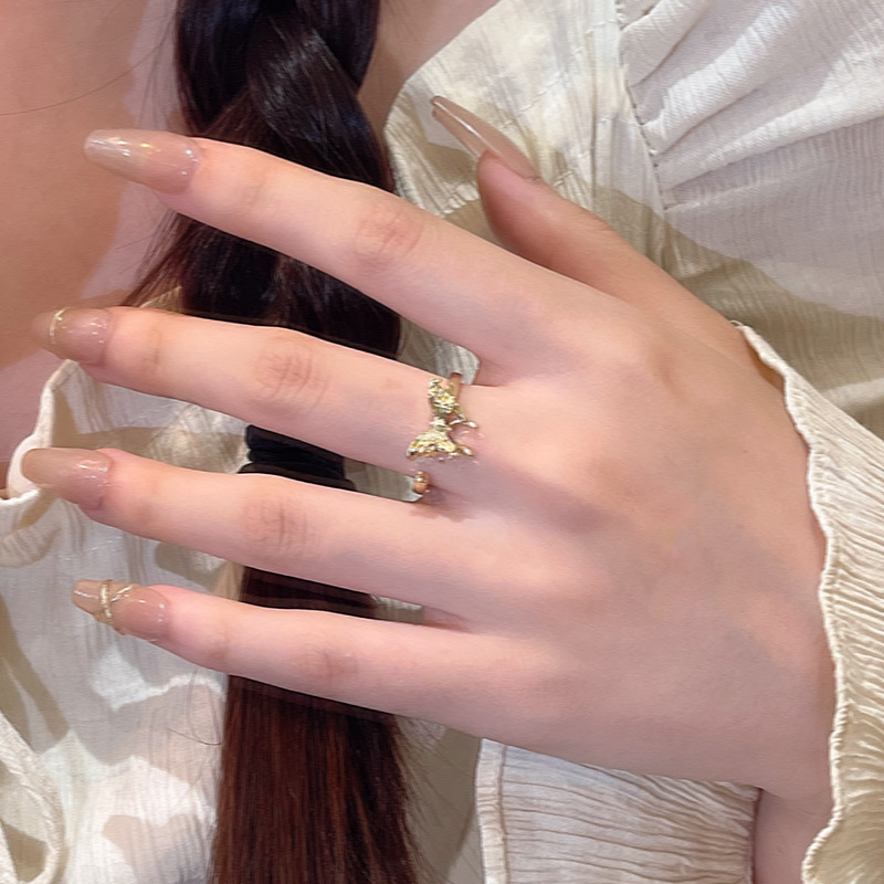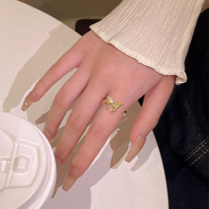 Sang trọng nhẹ nhàng, thích hợp cao cấp, đơn giản, nhẫn bướm không đều, nhẫn ngón trỏ hở cho nữ, Bán Buôn nhẫn cùng kiểu trên mạng