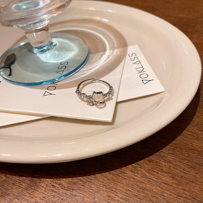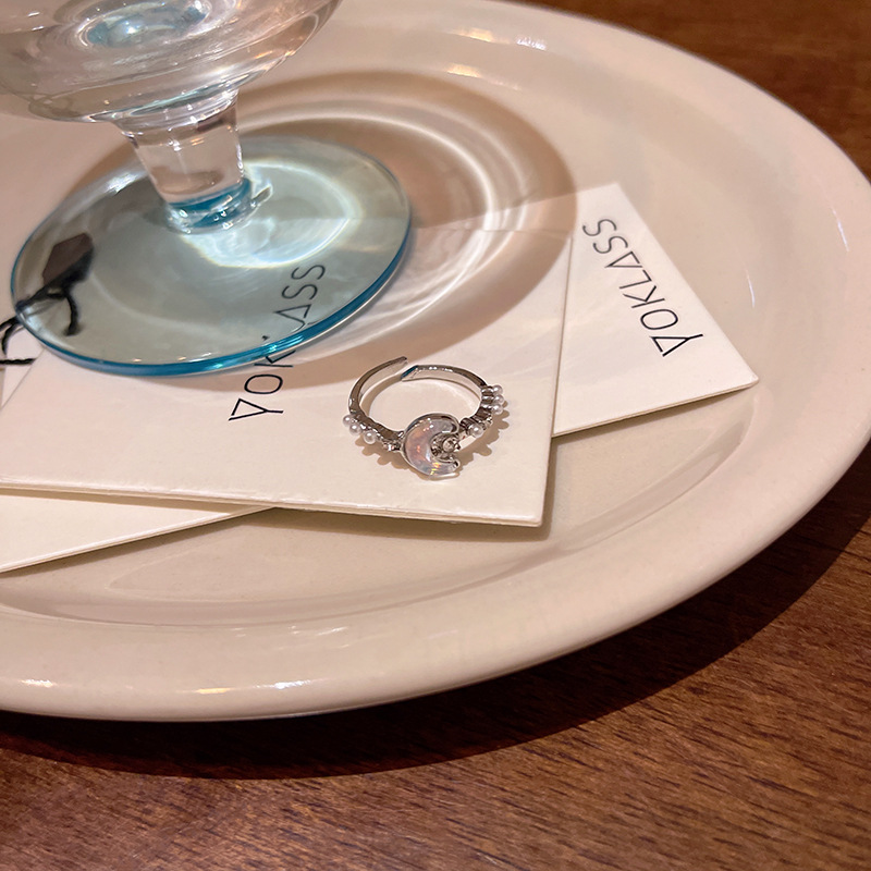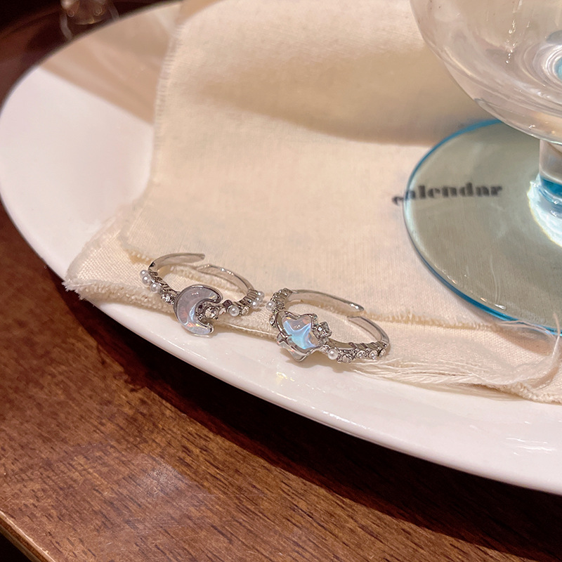 Siêu cổ tích khí chất Sông Băng màu xanh sao trăng hở nhẫn nữ sang trọng sang trọng nhỏ nổi tiếng trên mạng cùng phong cách cao cấp ngón trỏ