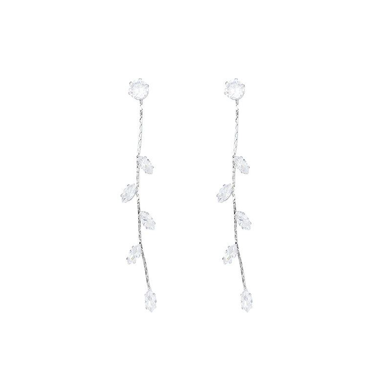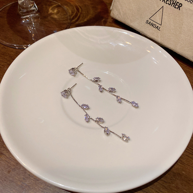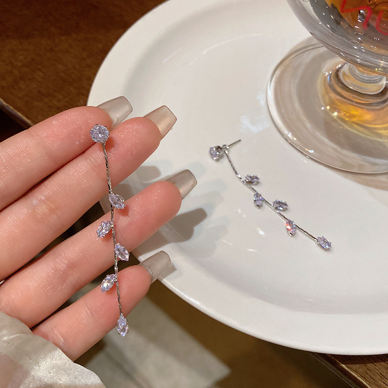 Siêu lấp lánh tinh tế Zircon Dài Tua Rua Lá Bông tai nữ thời trang tất cả các kết hợp khí chất cao cấp Bông tai bán buôn