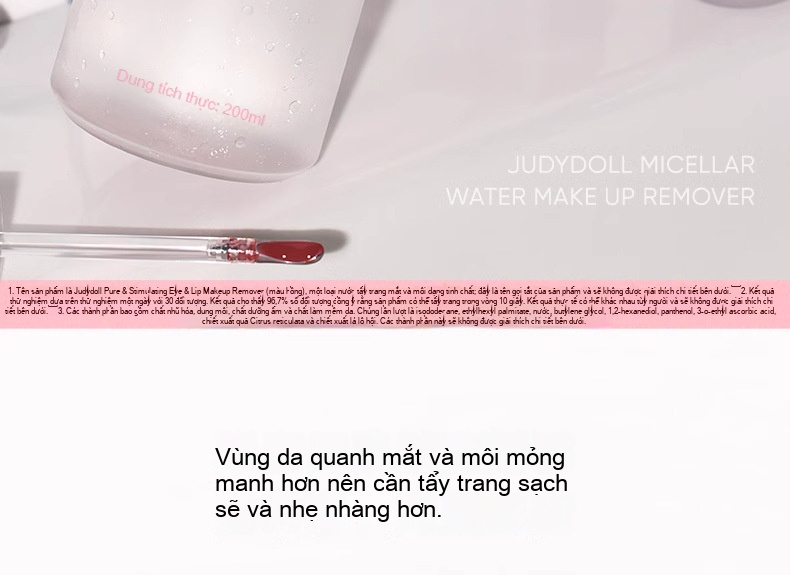 Tẩy trang mắt môi JUDYDOLL dành cho da nhạy cảm Làm sạch trang điểm