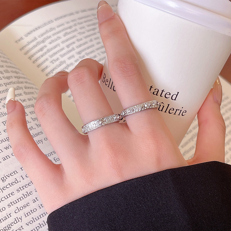 Thiết kế thích hợp, nhẫn đầy kim cương siêu lấp lánh, nhẫn ngón trỏ có thể điều chỉnh hở, Nhẫn đơn giản và đơn giản